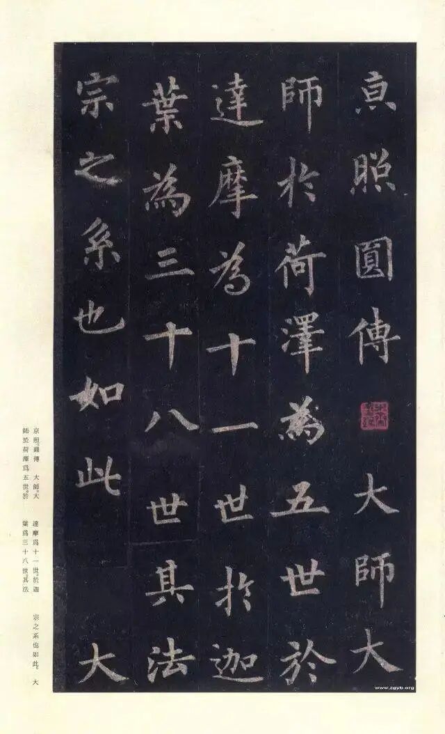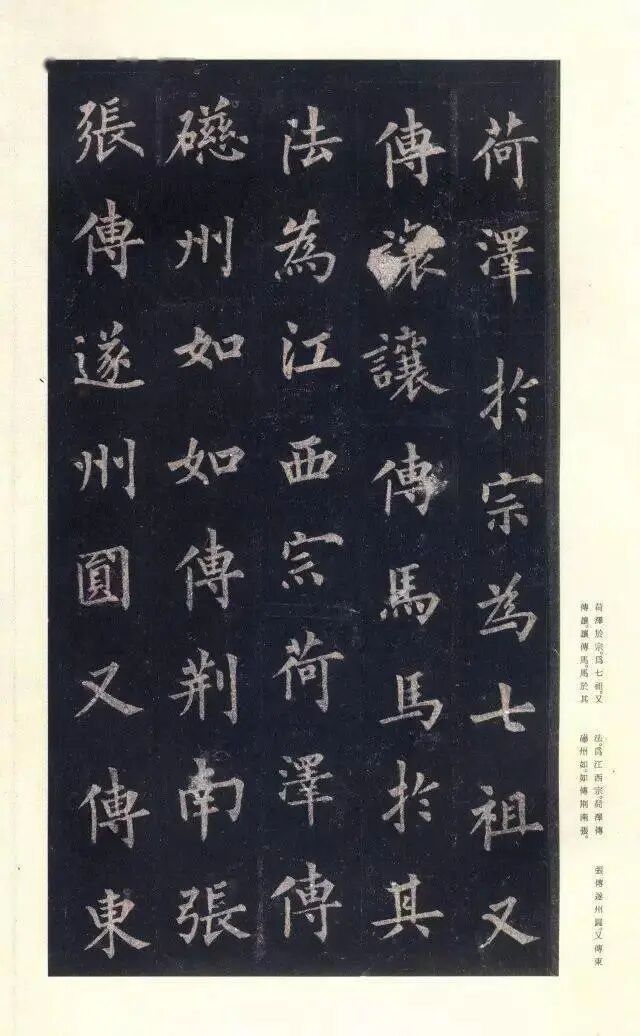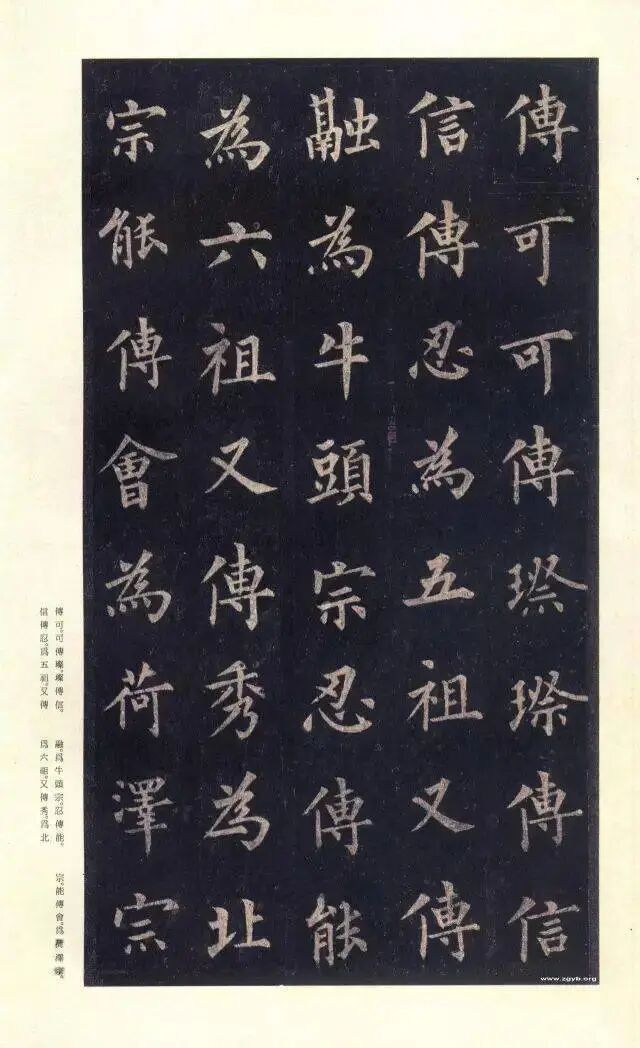 《圭峰禅师碑》全称“唐故圭峰定慧师传法碑并序”,又名《圭峰定慧禅师碑》,简称《圭峰碑》。公元855年立,唐代裴休撰并书,柳公权篆额,碑现存陕西户县草堂寺。碑高208cm,宽93cm,楷书,36行,每行65字,额篆书九字。此碑笔笔谨严,清劲潇洒,结构尤为精密,取法于欧、柳,是唐碑珍品。