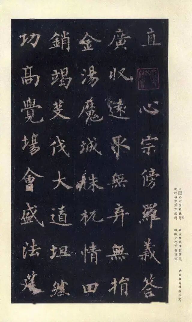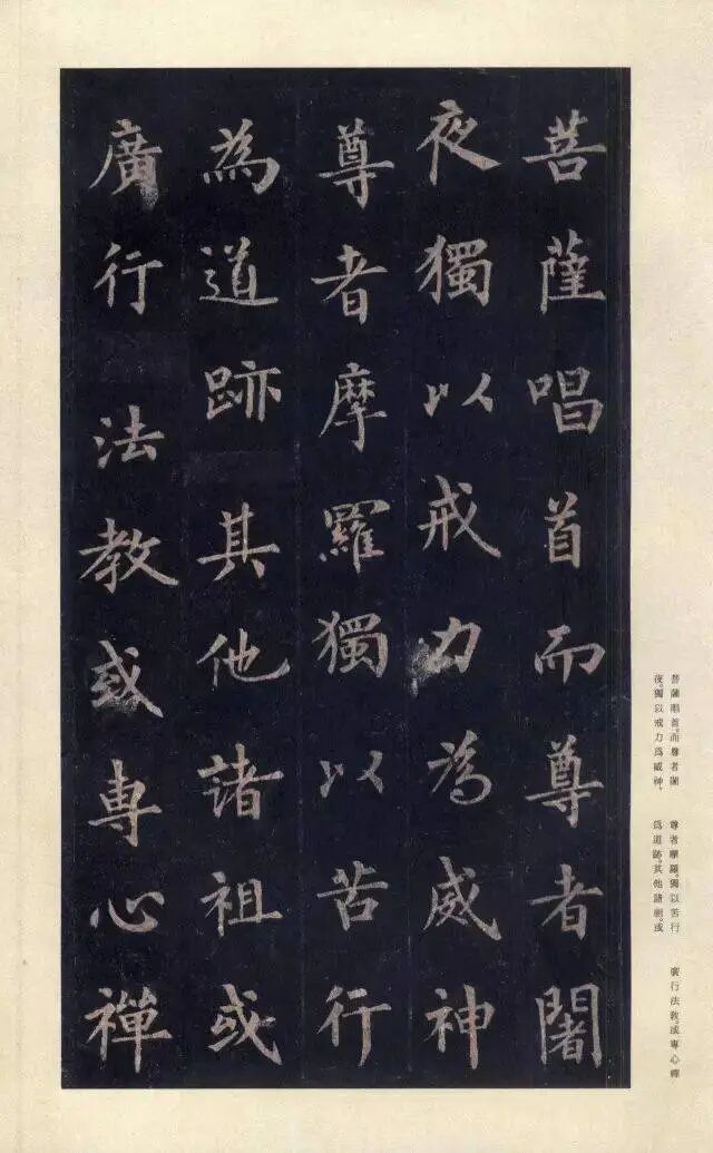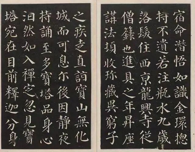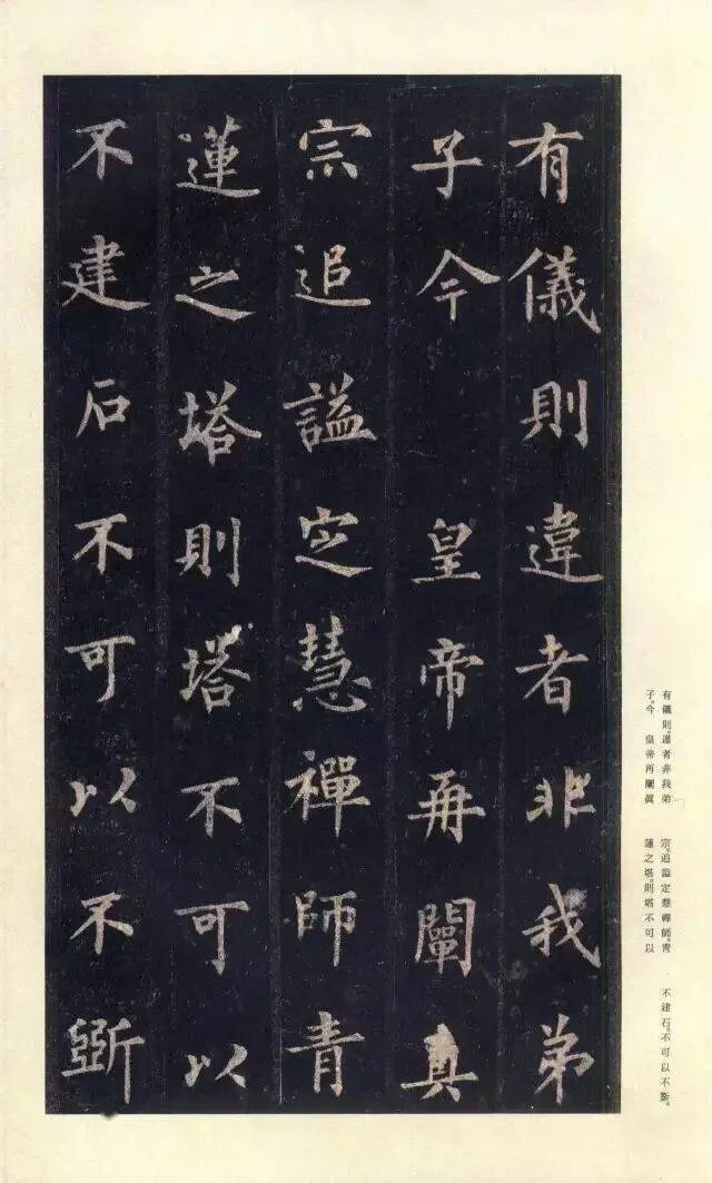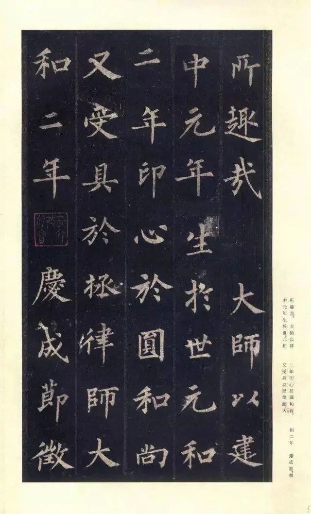 那么,为什么米芾对唐朝稍微出名点的书法家都嘲讽了一遍,却唯独对裴休略加赞赏?这与米芾挑剔眼光有很大关系,他符合了米芾审美或者风格取向。我们拿裴休楷书代表作《圭峰禅师碑》来欣赏。