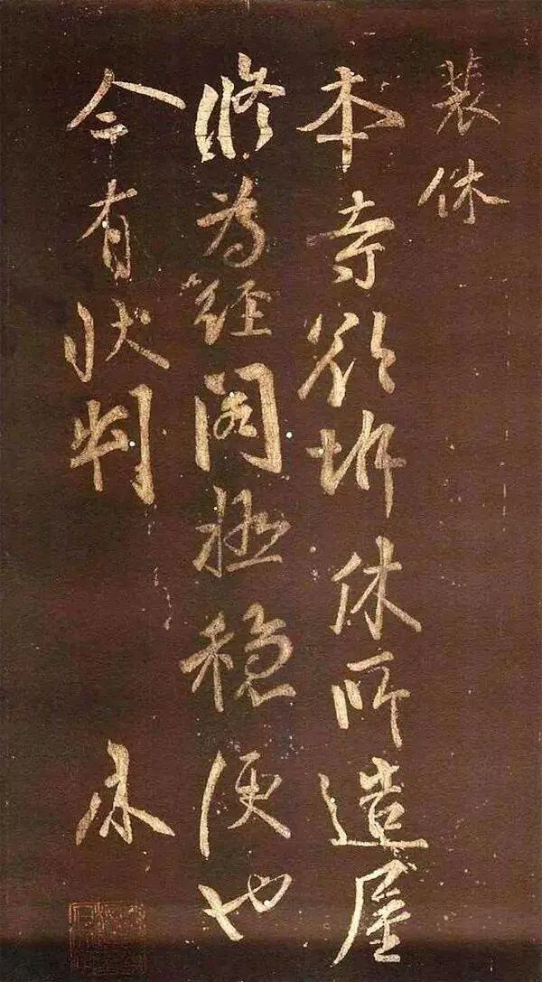 裴休存世作品不多,庆幸楷书《圭峰禅师碑》字数较多。而行书方面,如下图的《本寺帖》也十分精彩,让我们感受到裴林于书法之高妙造诣。