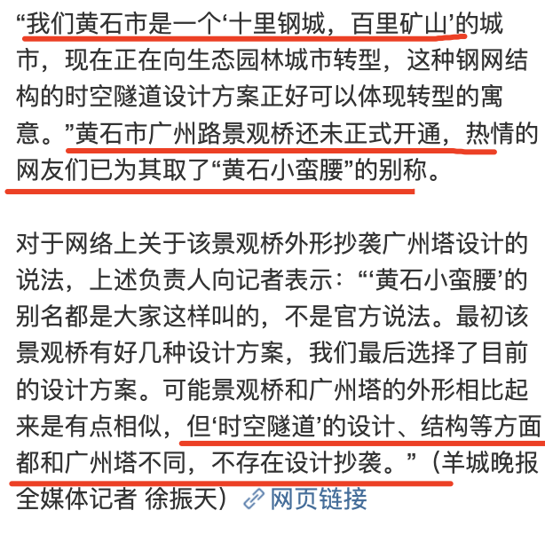 最新文章2023-06-02 迷惑:广州小蛮腰横过来了??? [ 迷惑:412 ] 来源 : 网络 哈哈哈 来看看、迷惑 湖北黄石市的广州路景观桥 的外观有点意思 看图的时候 第一眼我还以为广州小蛮腰横过来了 这是广州路景观桥 居然恰好是广州路 有网友质疑抄袭小蛮腰 官方回复、卧倒版小蛮腰不存在抄袭 这..... 虽然说交叉旋转、都可以做 但只是挺尴尬的 看看网友说的 本文来自微信公众号“瞎设计什么”(ID:bone-bones)。大作社经授权转载,该文观点仅代表作者本人,大作社平台仅提供信息存储空间服务。 TAGS: 小蛮腰广州路抄袭景观桥 相关文章英赫日报 | 李宁 × 空…米兰时装周的异星来客,用结…米兰“MoLo”移动与物流…西班牙艺术家 Juan d…把小鸟画成美少女,她弃医从…这些鸡蛋包装不只是有趣,设…国产文具又炸了!晨光再造“…七点资讯 |《更衣人偶坠入…AlphaDraw筑绘通「…秦始皇的黑,是你不懂的黑。