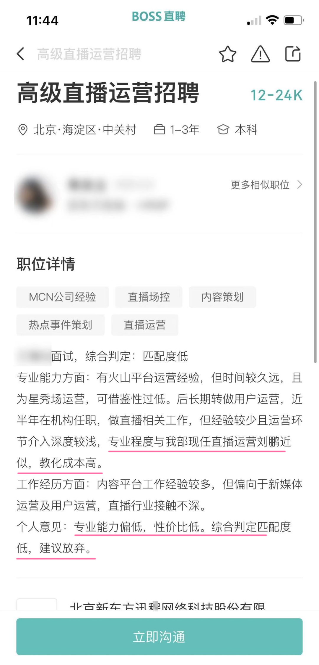这位hr不知道现在发现没有