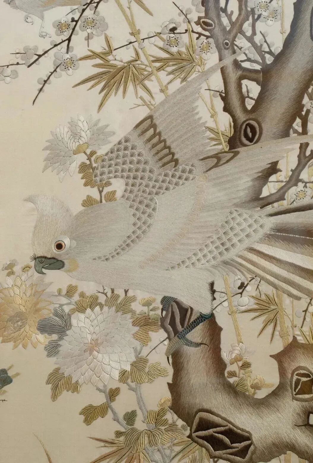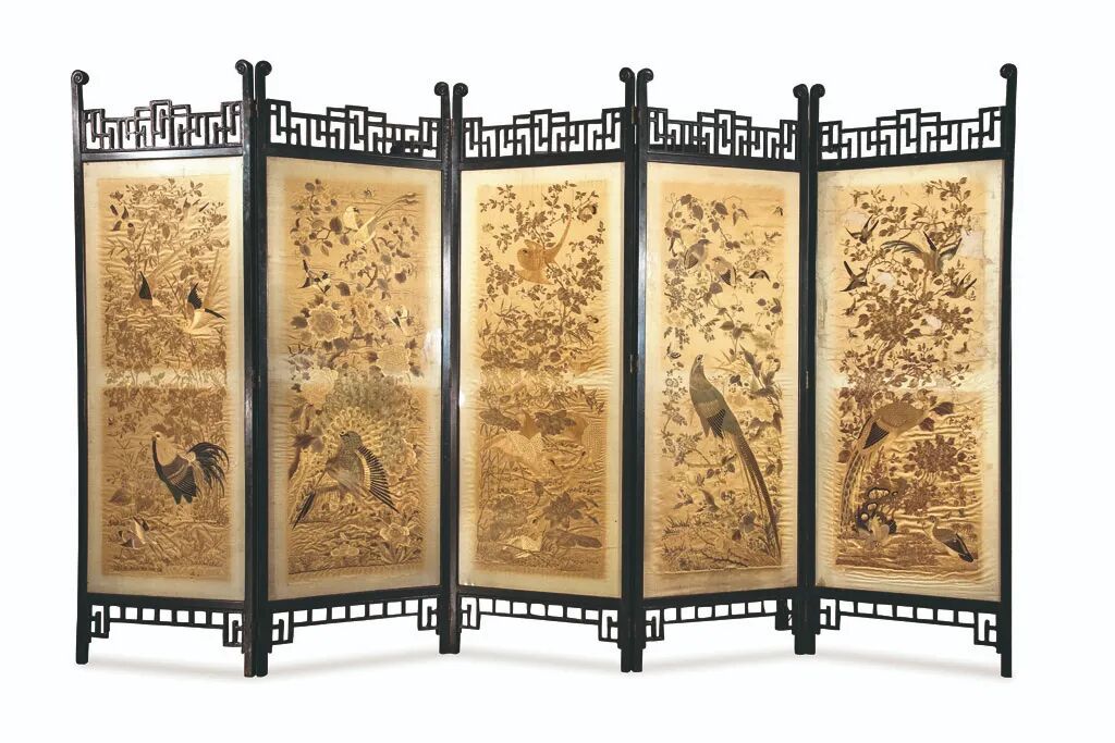 四大名绣包括苏绣、粤绣、湘绣、蜀绣,各有千秋/清 广绣花鸟纹五屏屏风/广州十三行博物馆藏