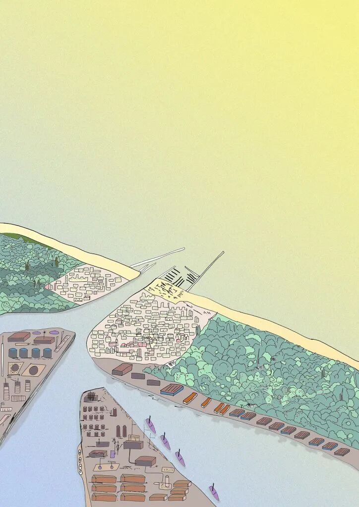 这一系列插画图纸是展示时间概念、表达未来情景的首选工具,尤其是让人们了解涉及我们所有人的风险,但这些风险仍然对我们的良知和日常生活没有太大影响。这一系列插图跨越了从过去到2100年的时间线,希望讲述一个以拉文纳市为样本城市的故事,因为拉文纳市深受气候变化加速的影响,特别是海平面上升的风险。