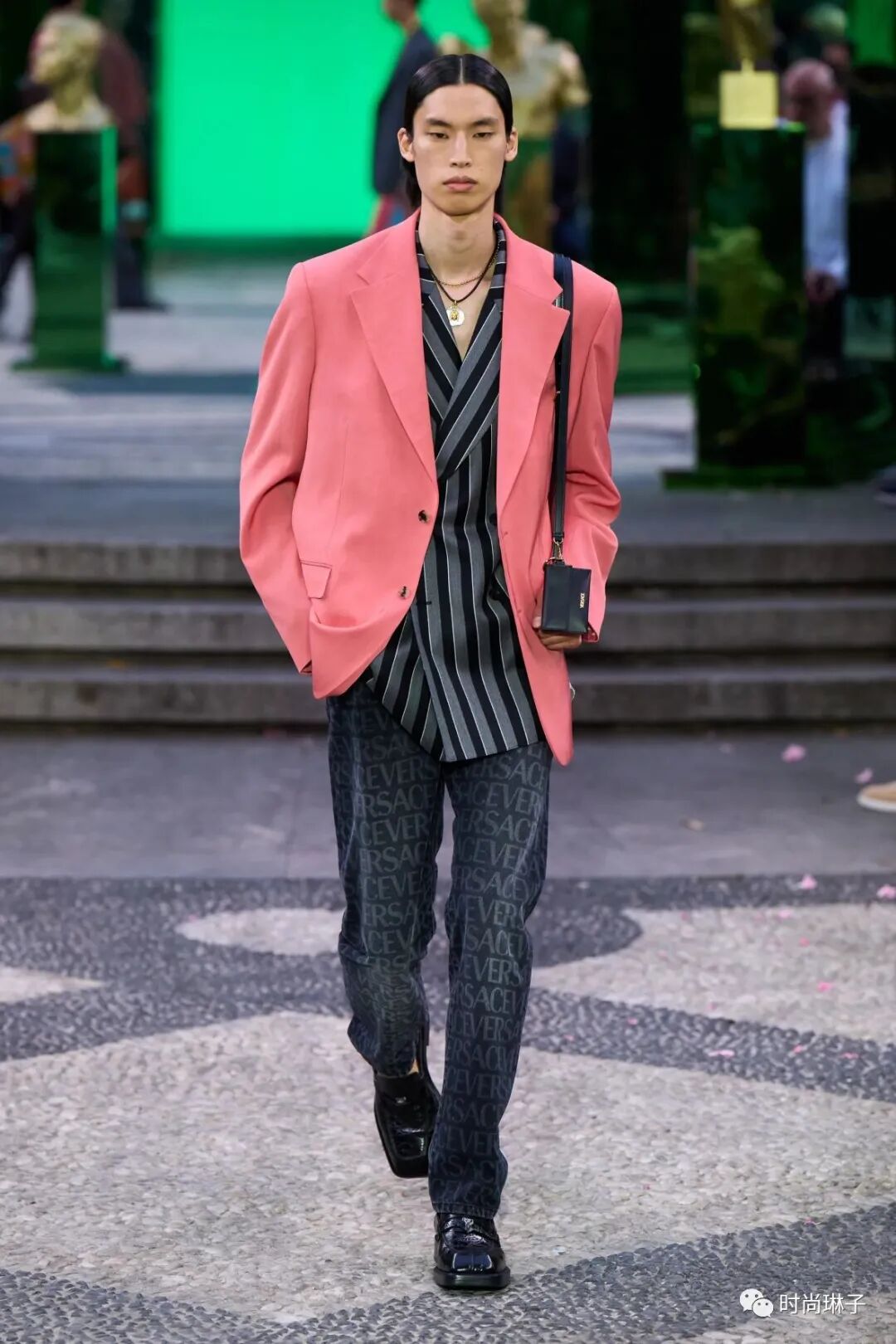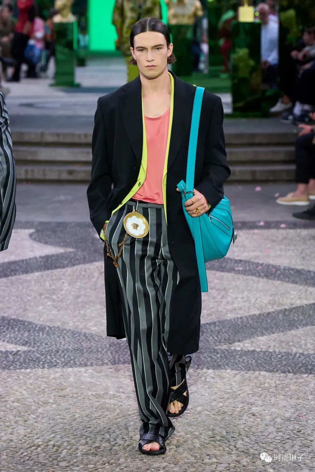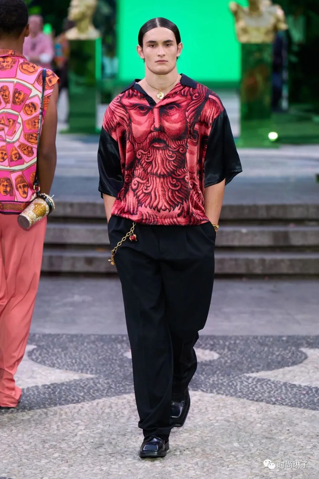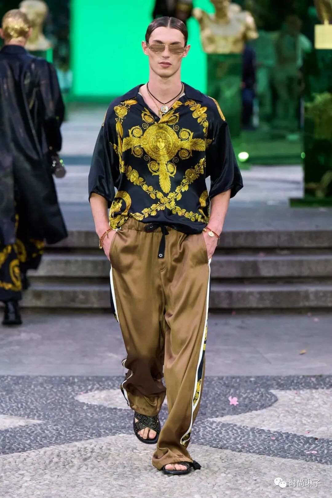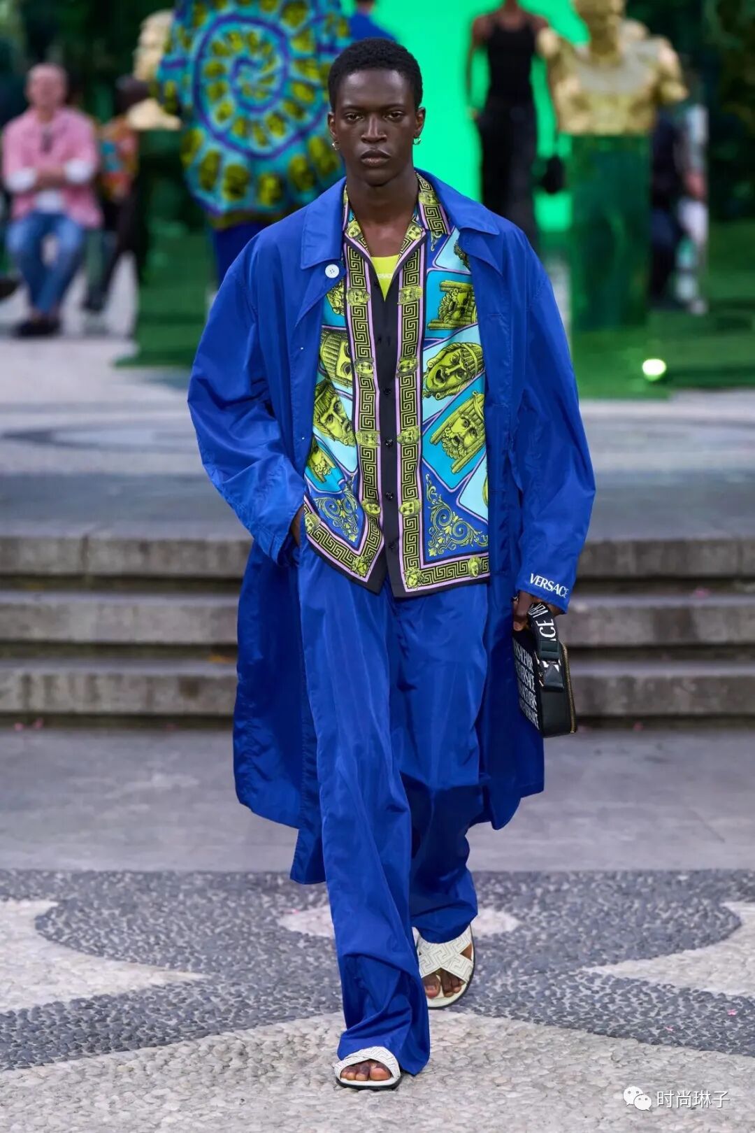 VERSACE 2023春夏男装系列中家居用品作为配件,有趣而正式,以多元风格冲击视觉界限。