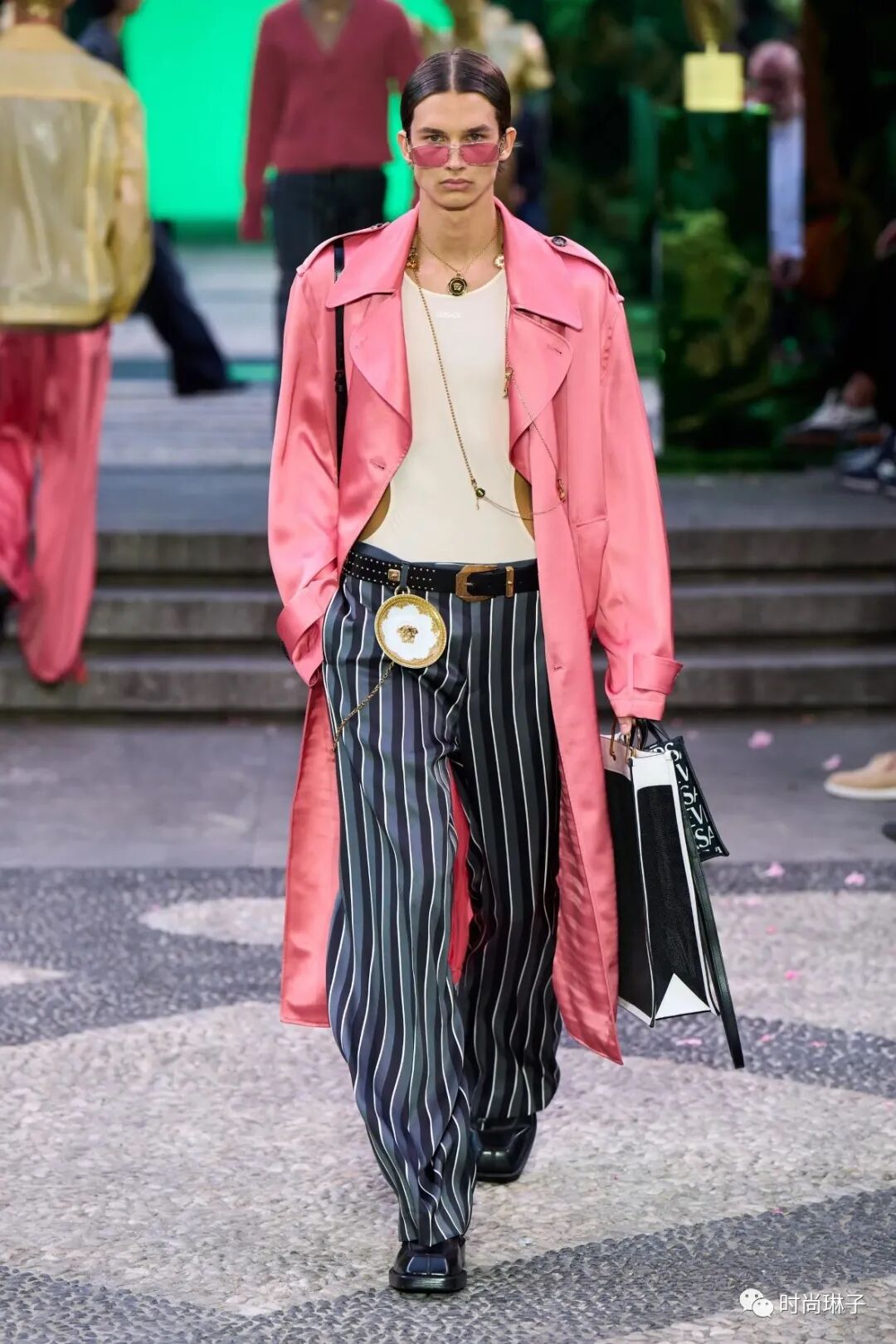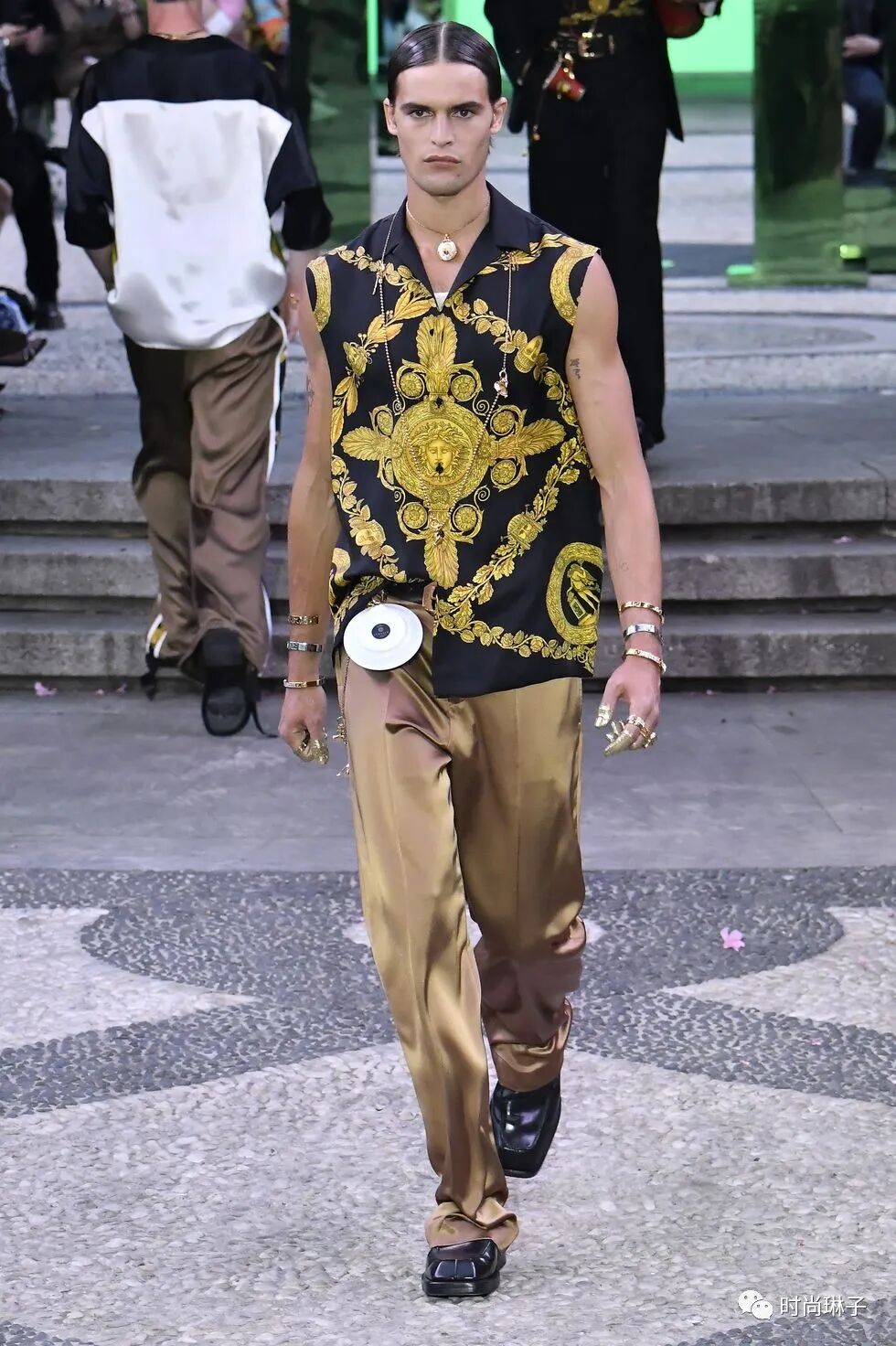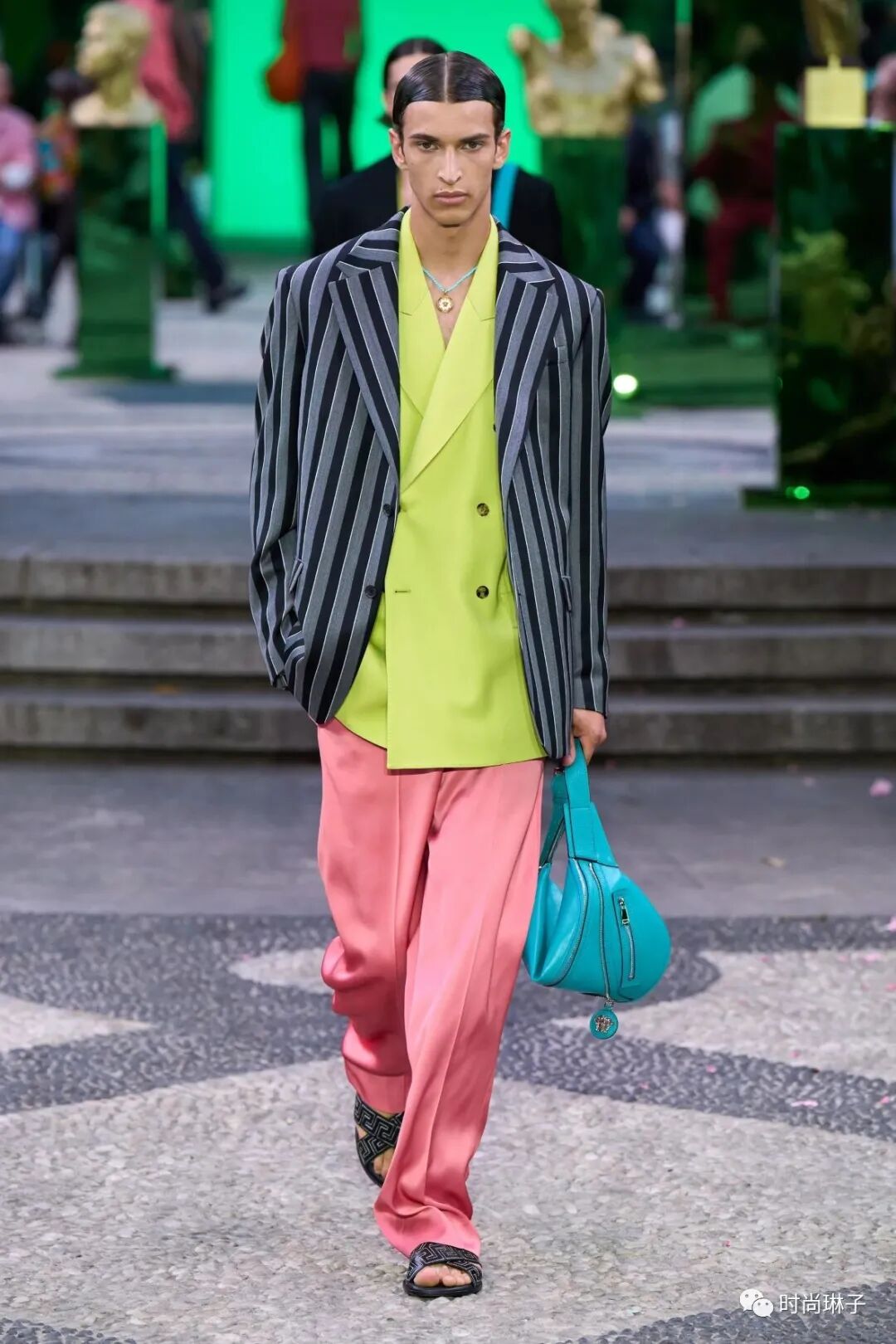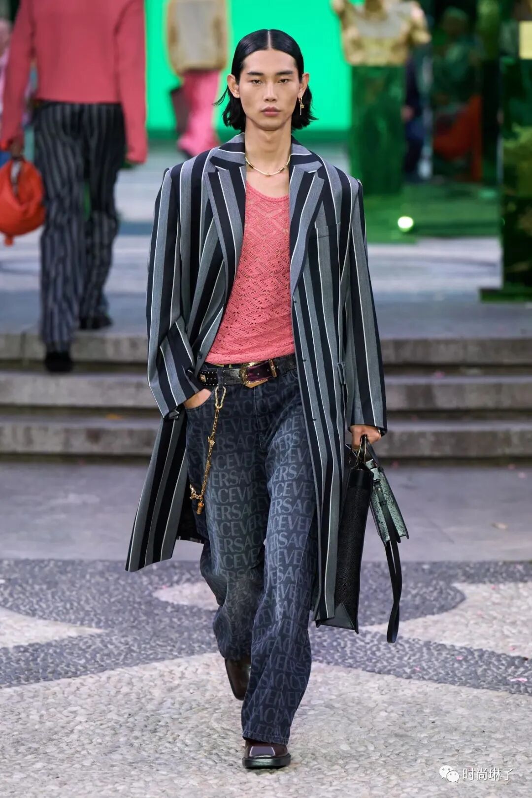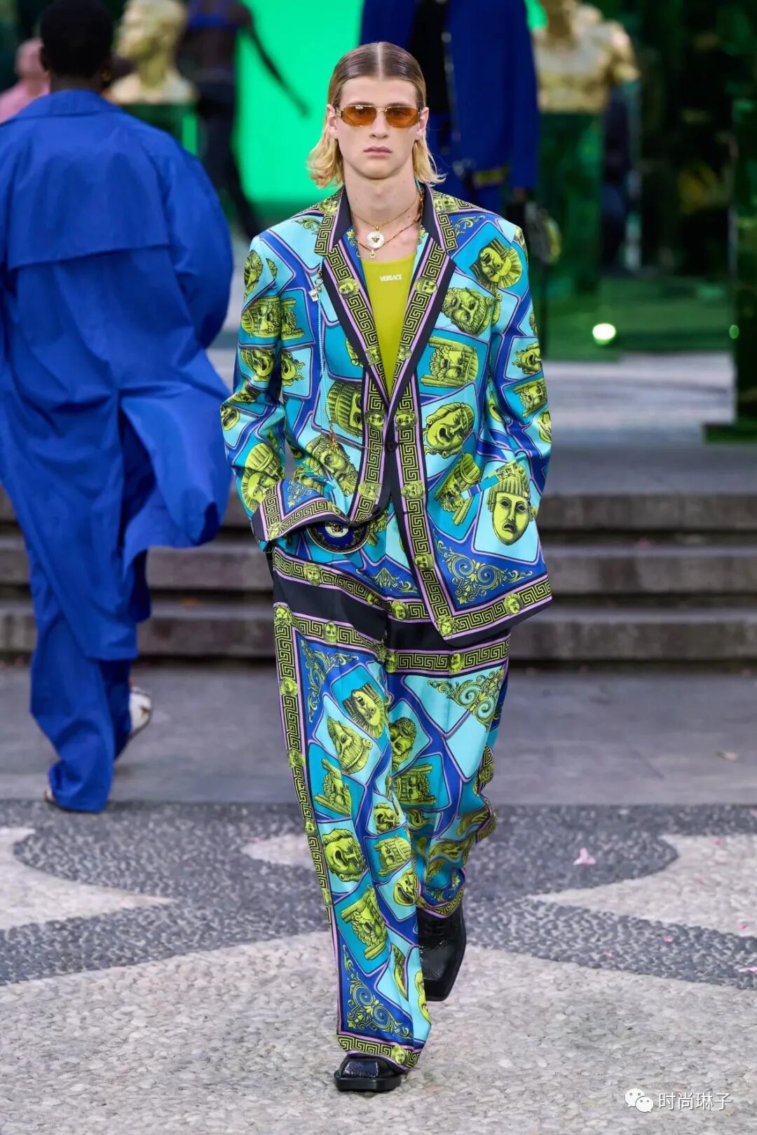 VERSACE 2023春夏男装系列中家居用品作为配件,有趣而正式,以多元风格冲击视觉界限。