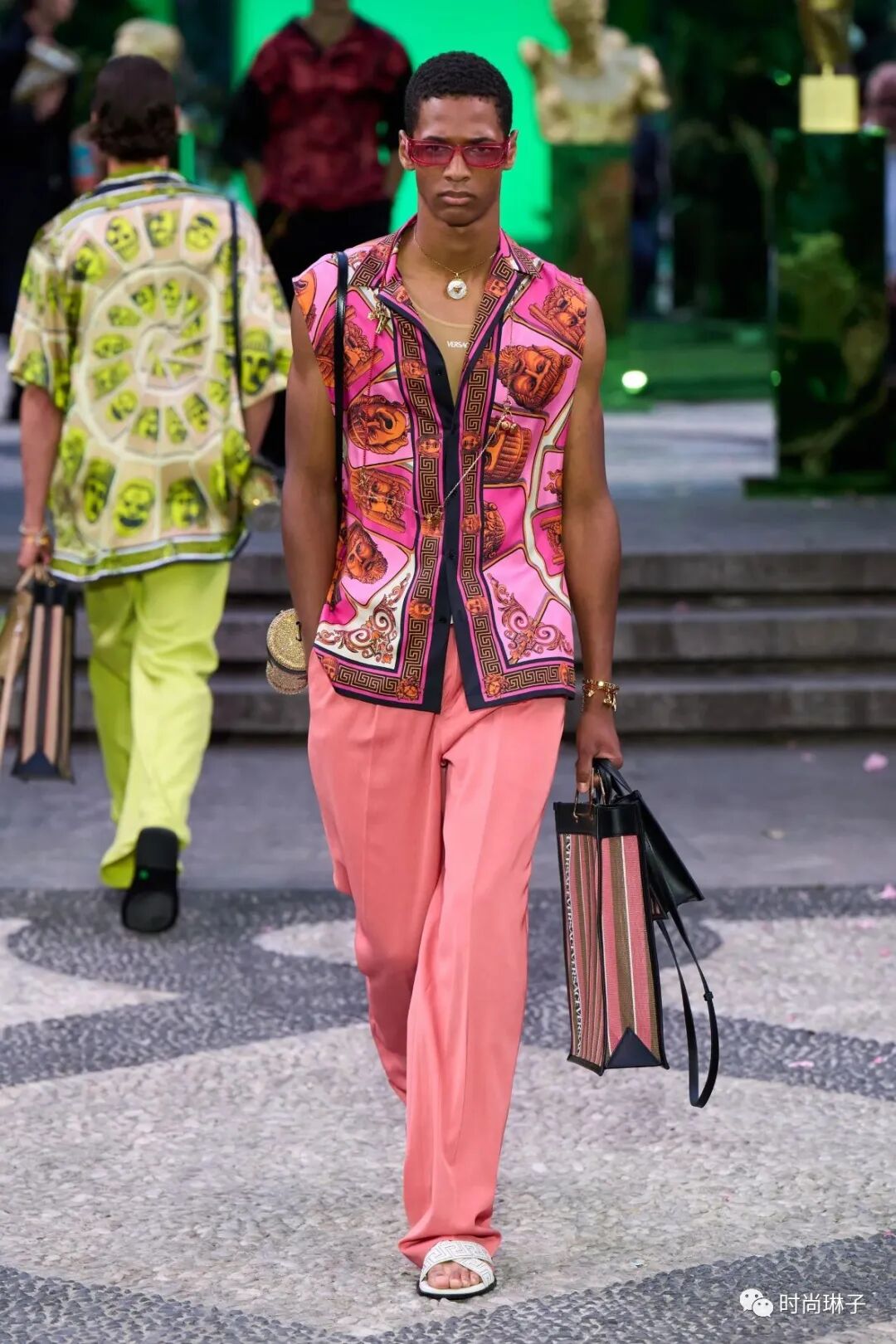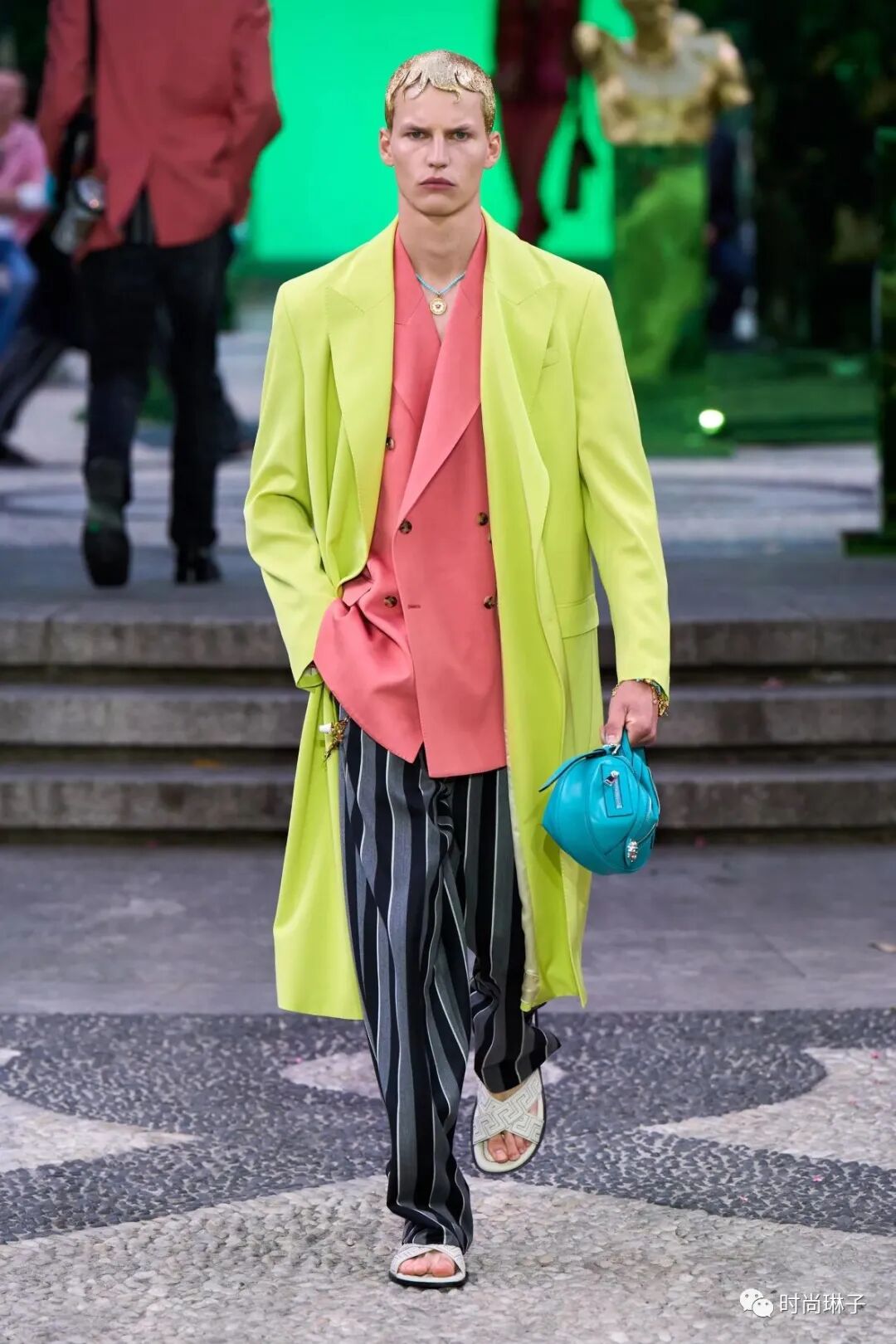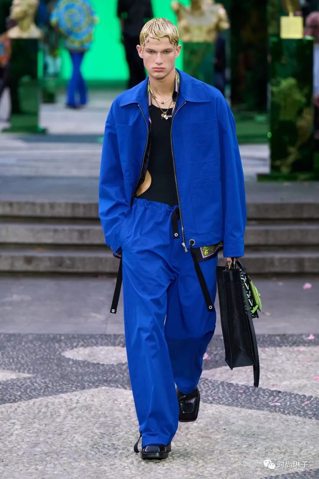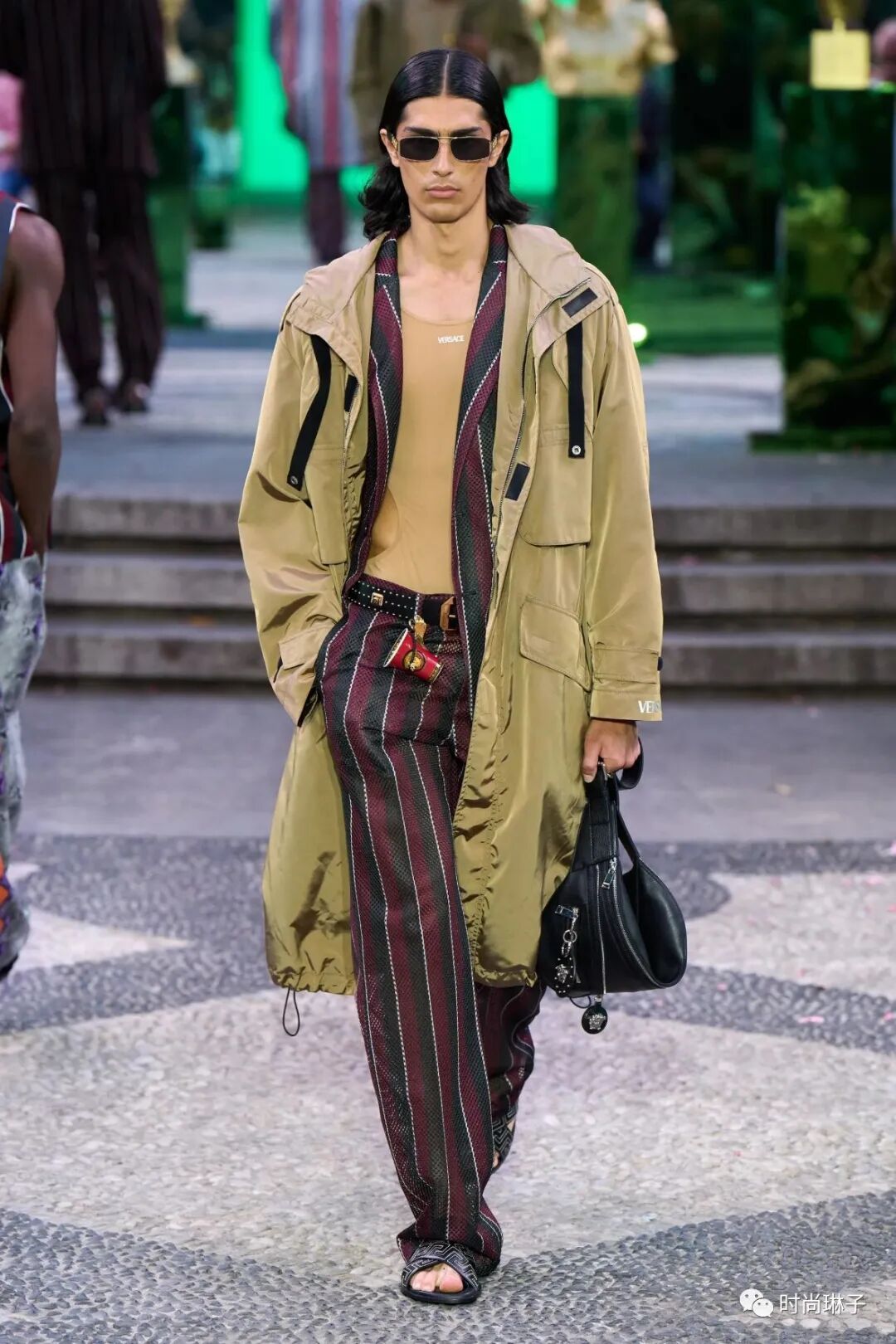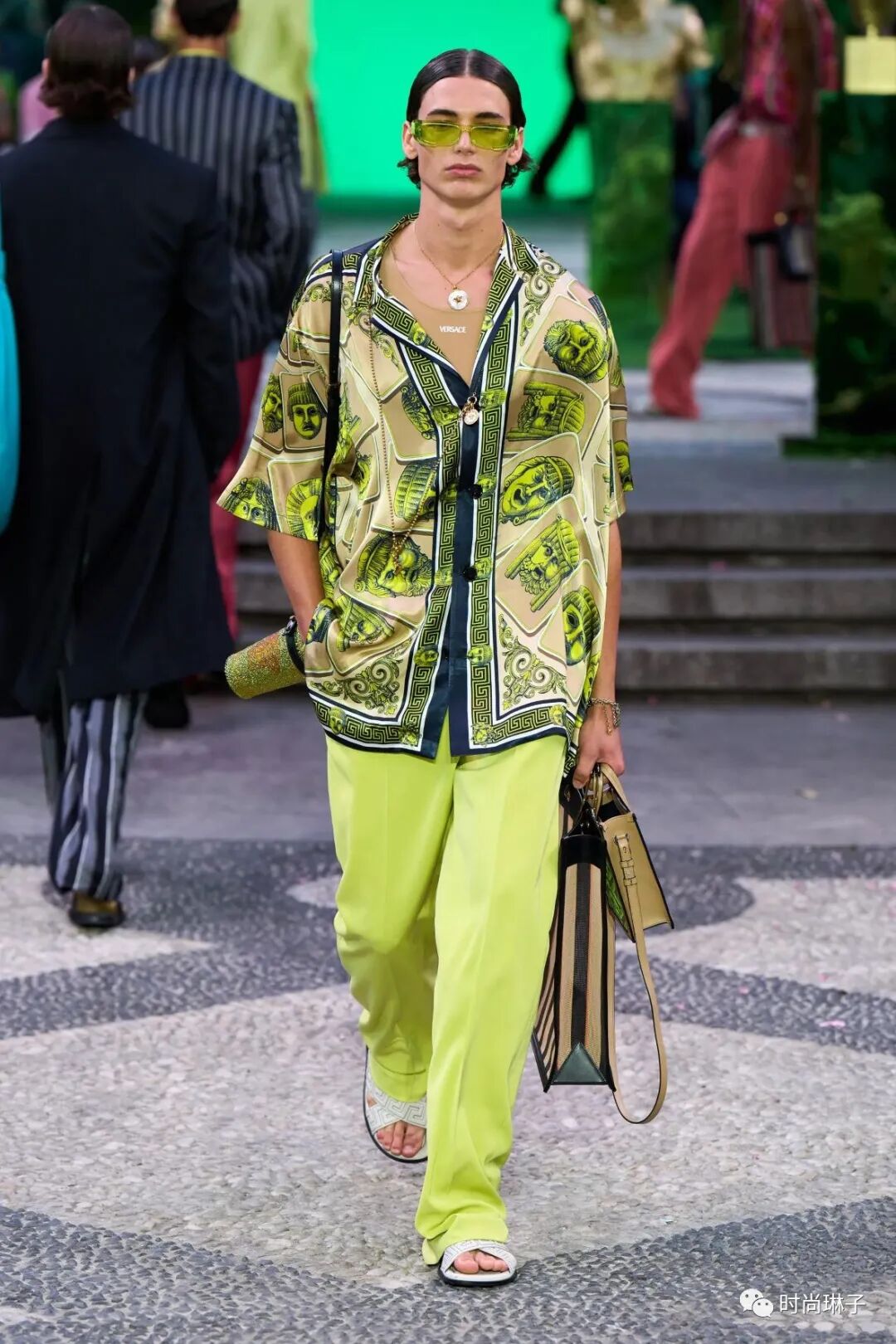 VERSACE 2023春夏男装系列中家居用品作为配件,有趣而正式,以多元风格冲击视觉界限。