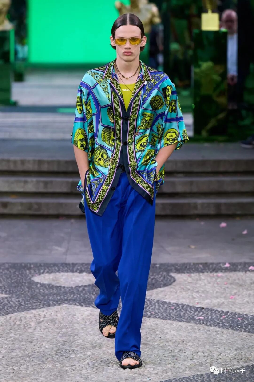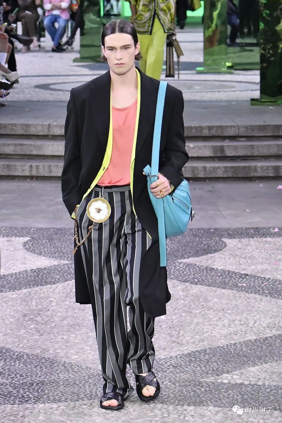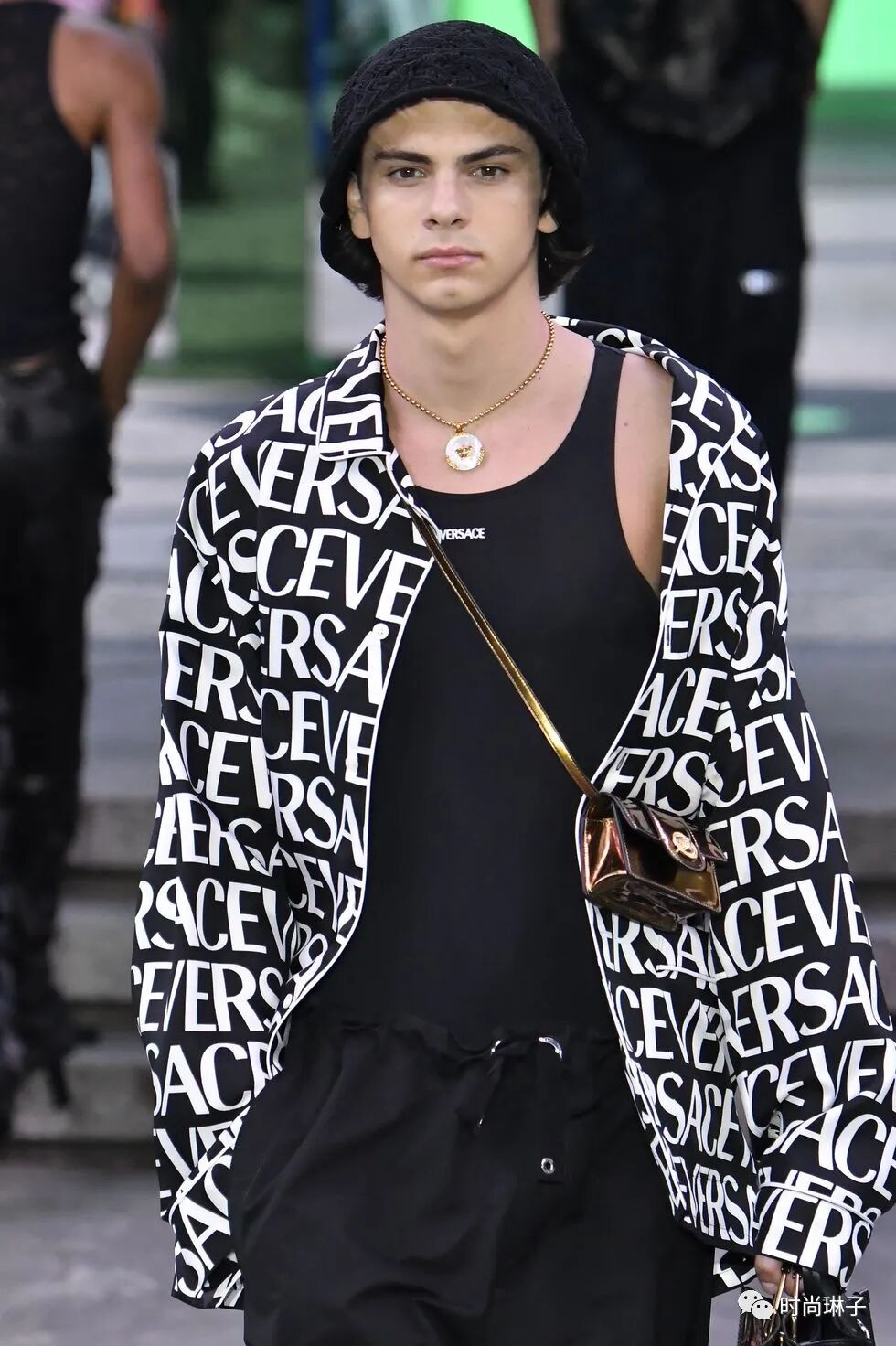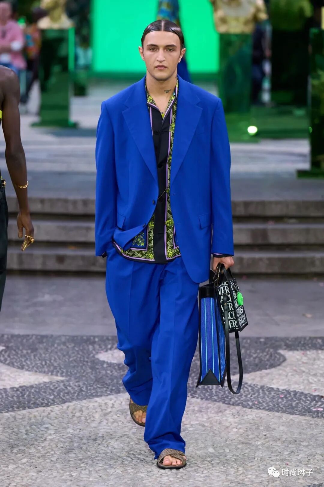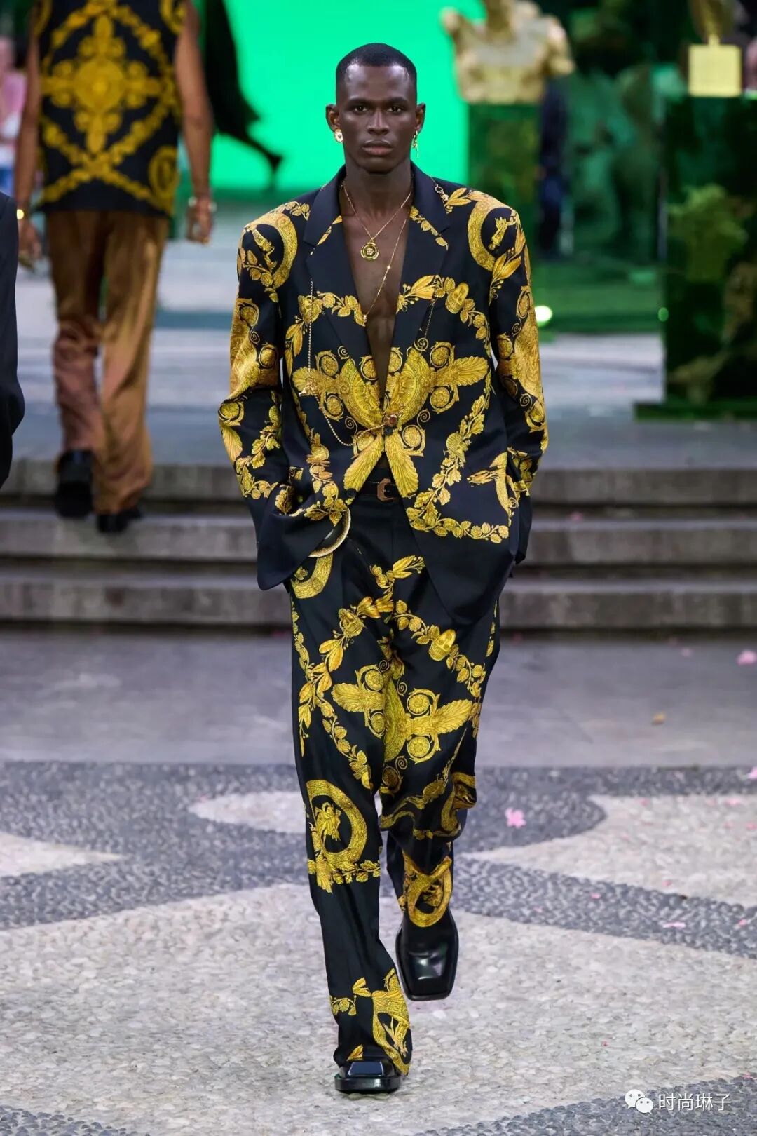 VERSACE 2023春夏男装系列中家居用品作为配件,有趣而正式,以多元风格冲击视觉界限。