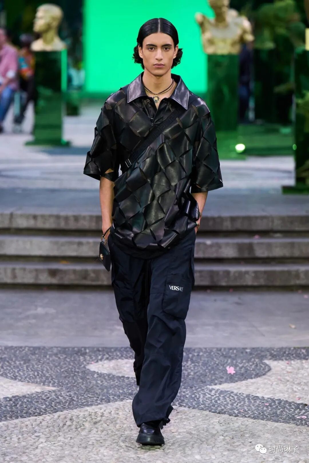 范思哲VERSACE 2023春夏男装系列中多款包袋蓄力无限创想,巧妙变化包袋尺寸,以手提或斜挎方式解锁多元时尚可能。