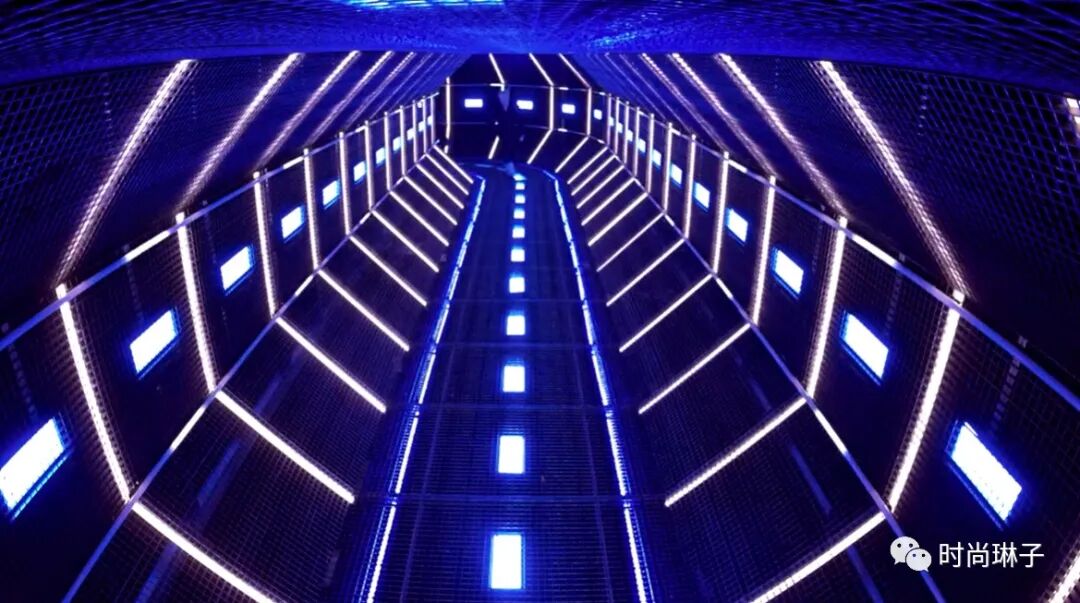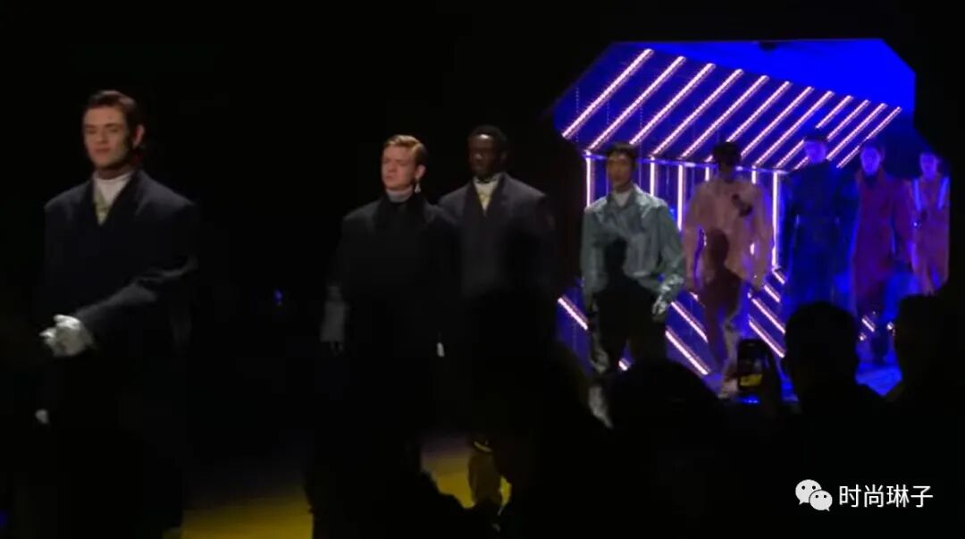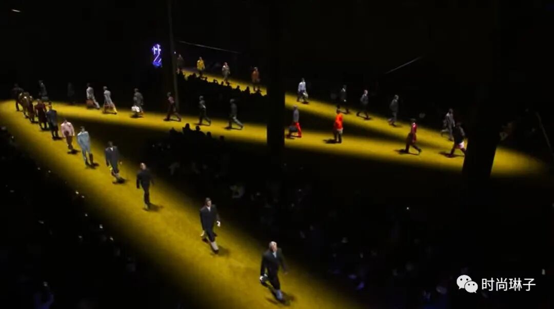 该季Miuccia Prada 和 Raf Simons带我们穿越蓝色的时空隧道,来到了蜿蜒的Z型灯光秀场。