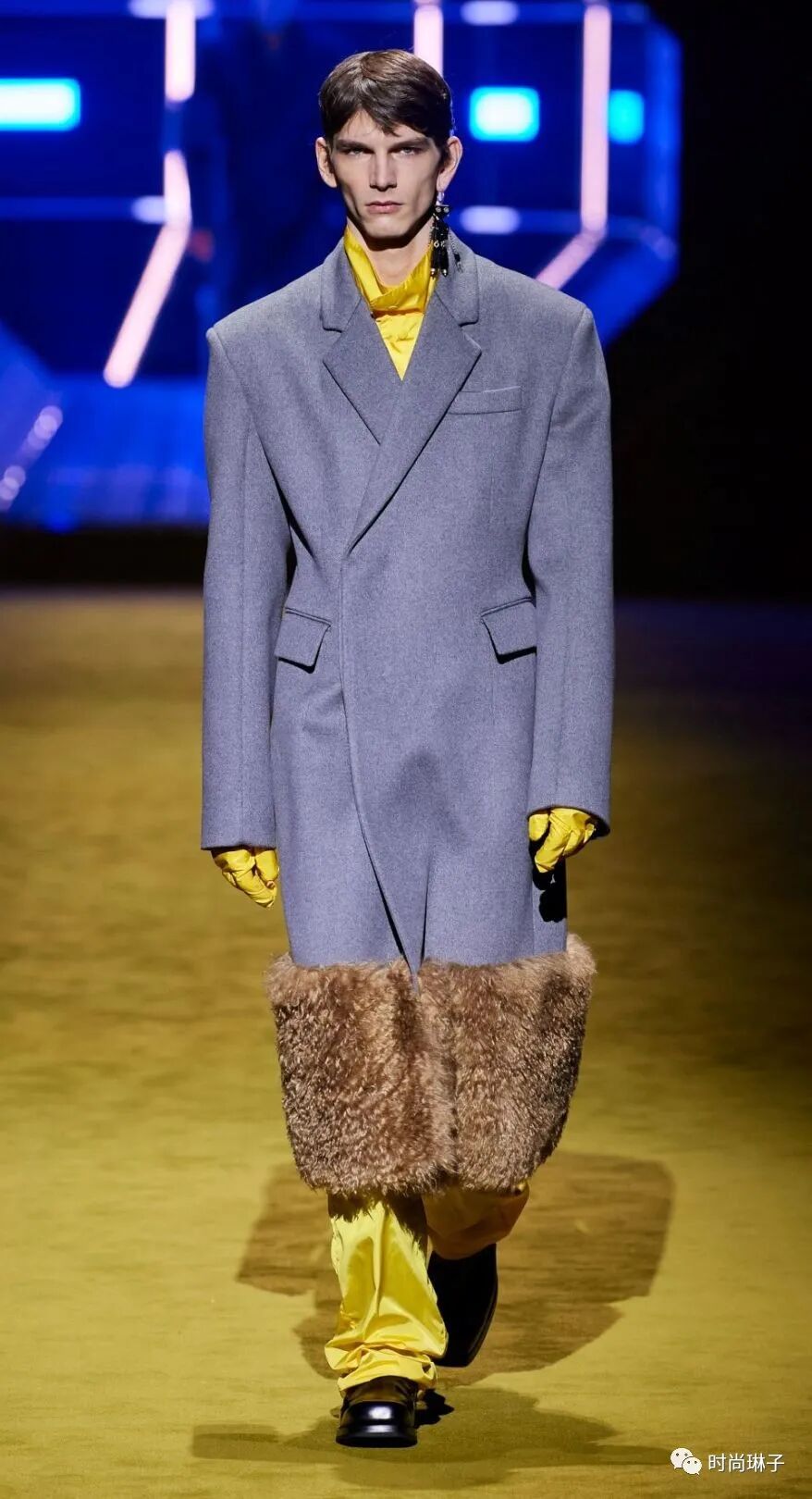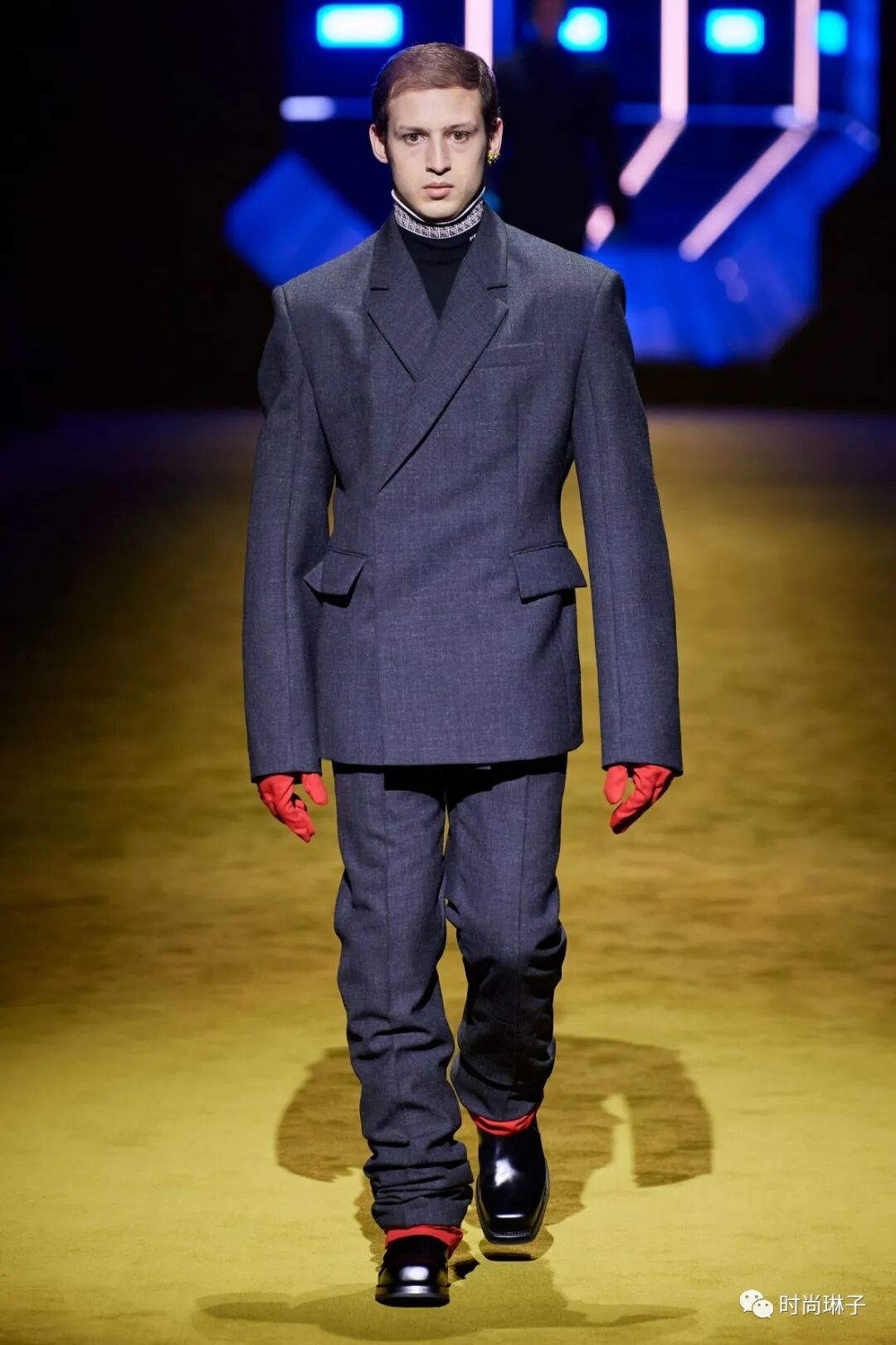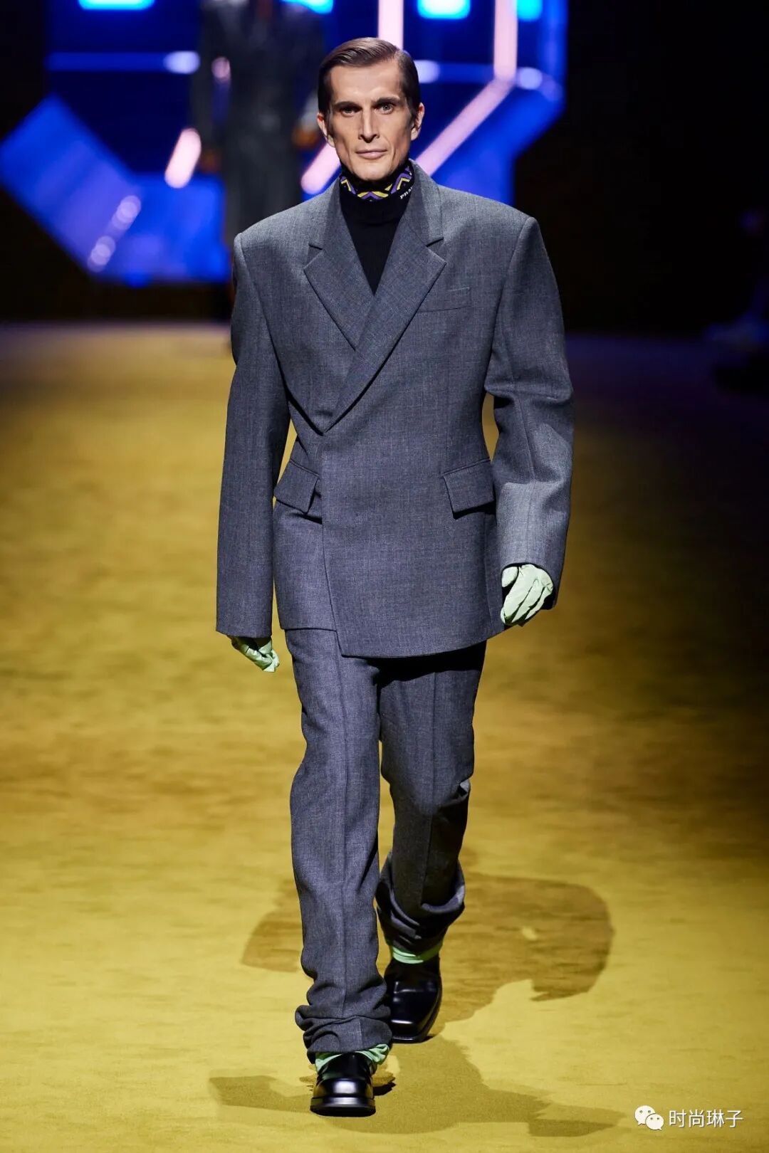 相对前一天融入了女性元素的芬迪男装大秀【米兰男装周】Fendi 芬迪 2022 秋冬系列融合了花花公子风和女性元素,致敬咆哮的黄金1920年代,普拉达Prada更多了几分男性的硬朗和力量感。
