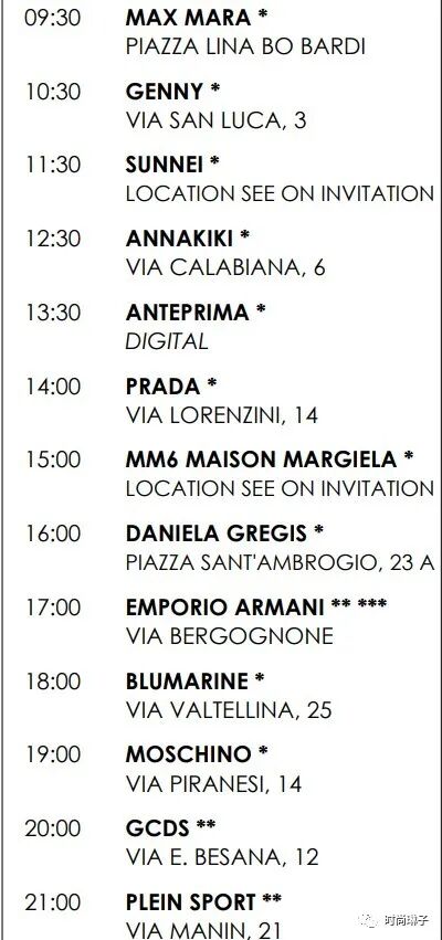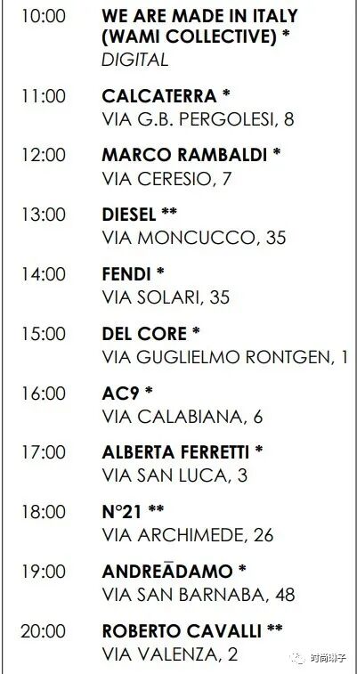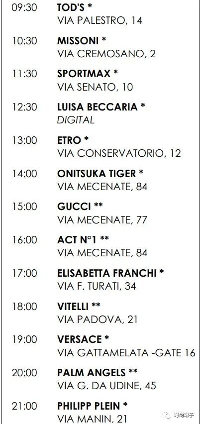 该季Fendi芬迪、Prada普拉达、Versace范思哲、Max Mara等意大利知名品牌将继续发布最新的2022秋冬女装系列。而此前宣布退出时装周日程的Gucci古驰和Bottega Veneta 将重返米兰时装周。Moschino上一季加入了纽约时装周,而该季也回归米兰。此前因疫情取消原定于 1 月份展示男装和高级定制系列的Armani阿玛尼也将重返米兰时装秀秀场。