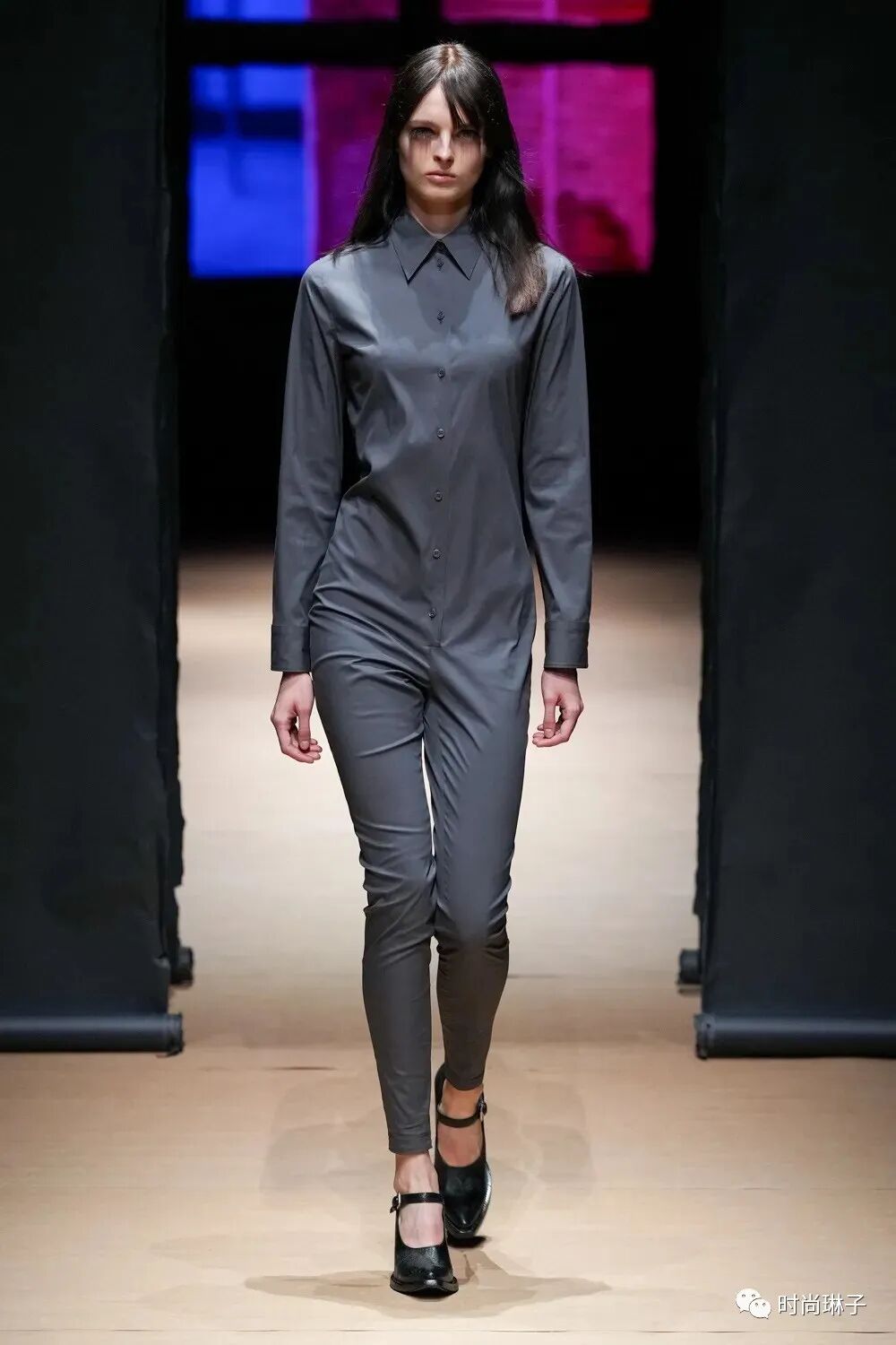 该系列的单色连身裤,外搭夹克或风衣,没有一丝多余的设计,简洁且干练。