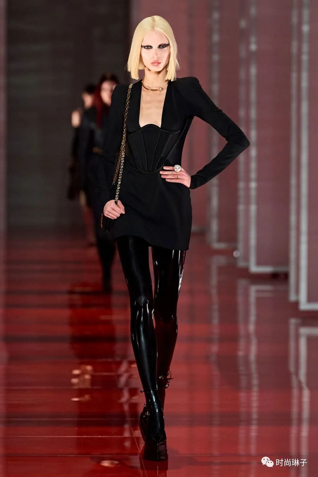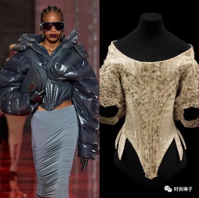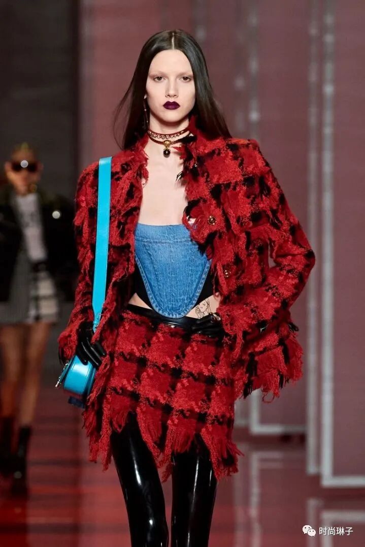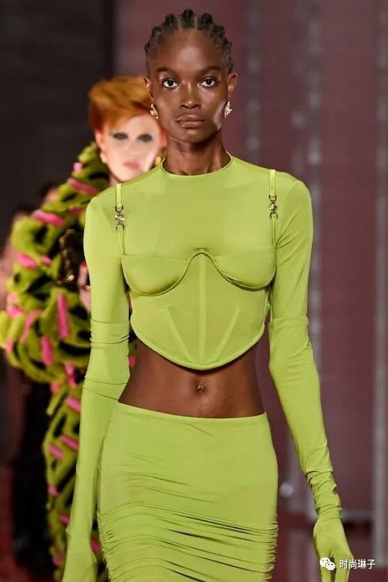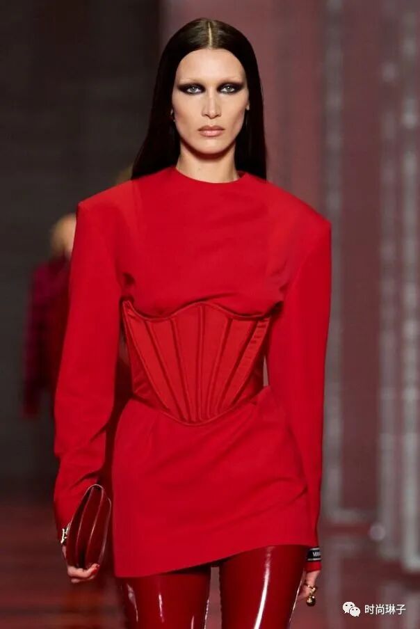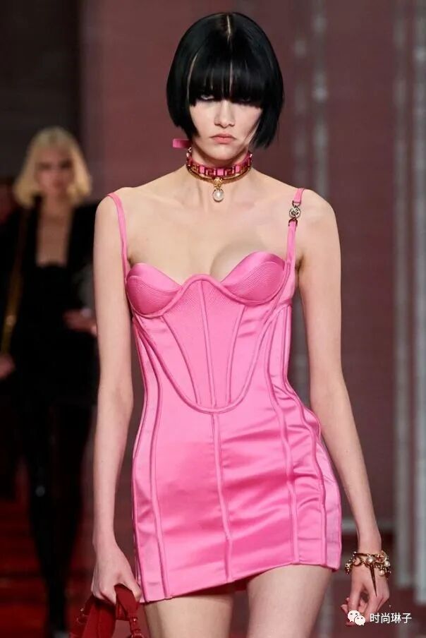 范思哲Versace 2022秋冬系列最大的亮点就是紧身胸衣的造型,它贯穿了整个系列。