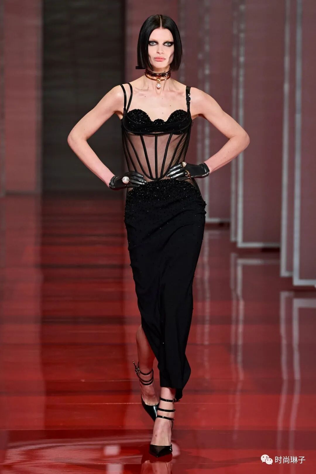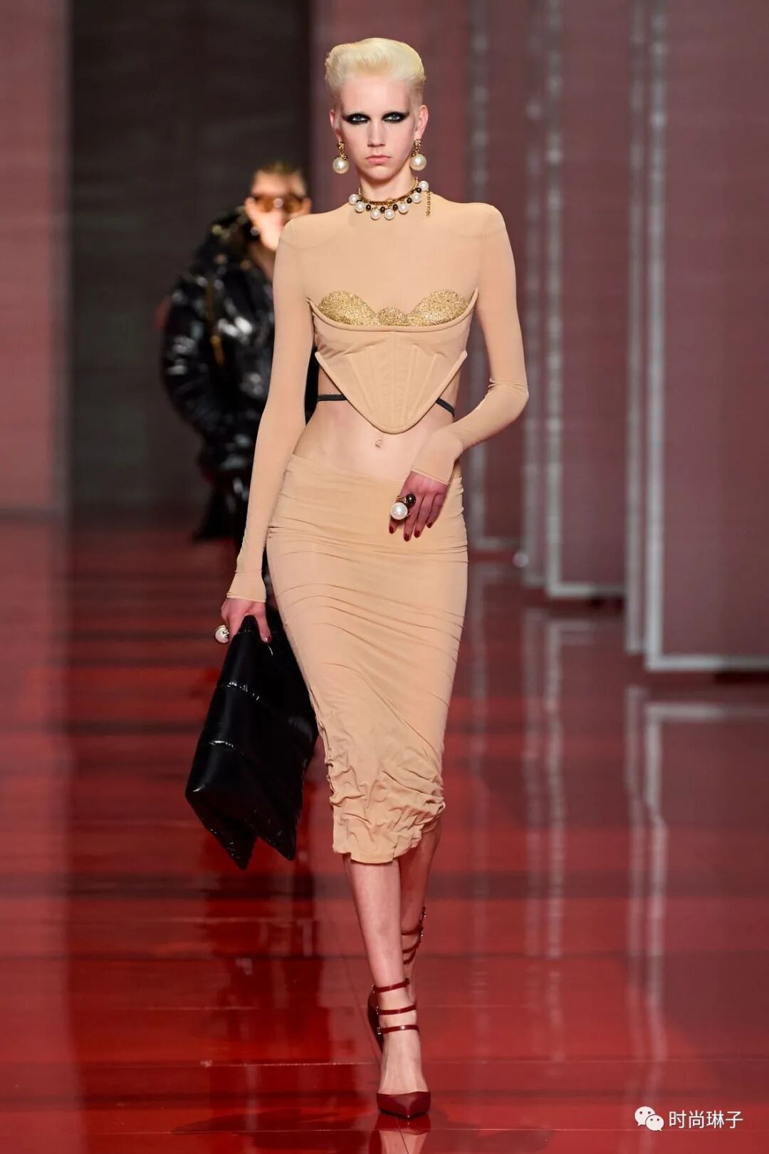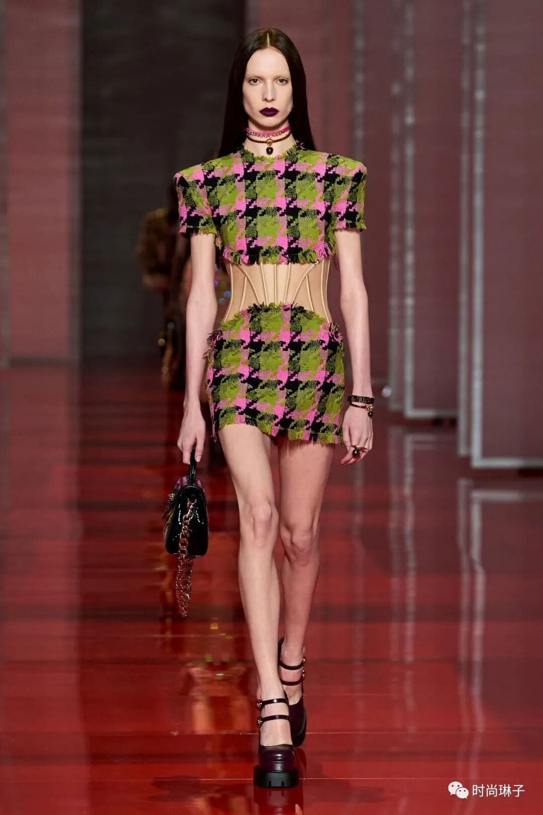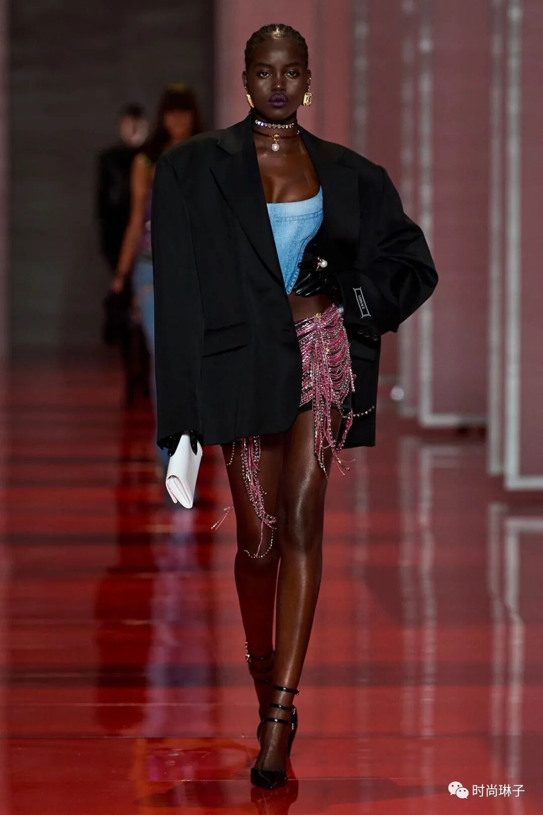 范思哲Versace 2022秋冬系列最大的亮点就是紧身胸衣的造型,它贯穿了整个系列。