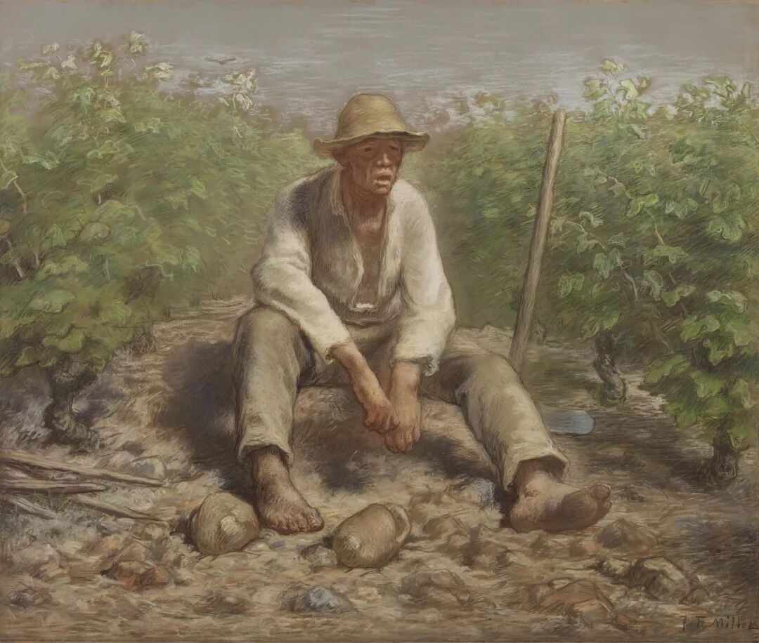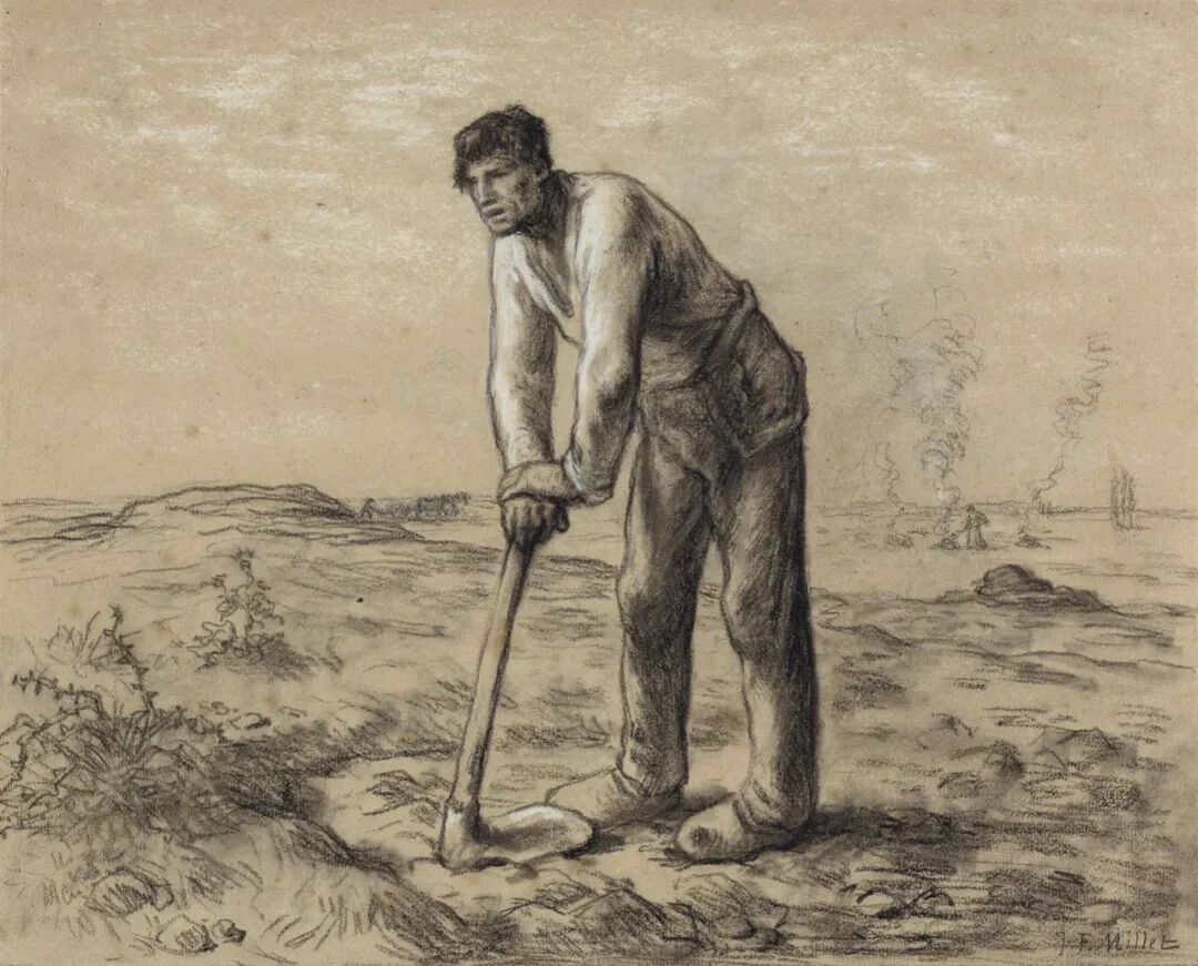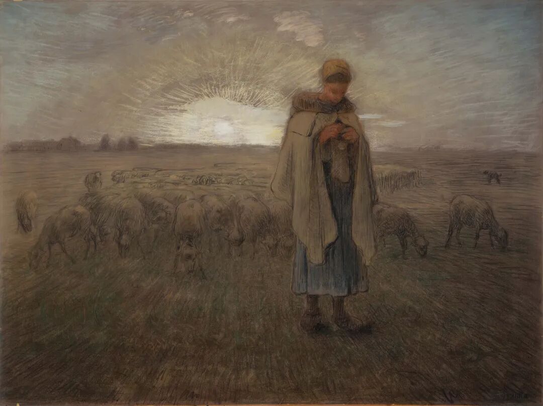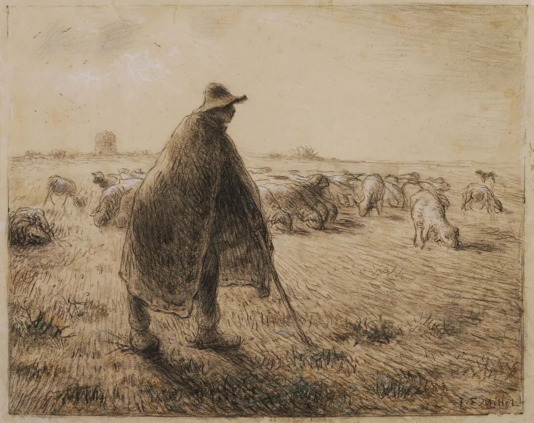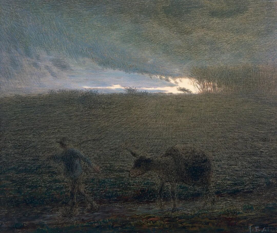 米勒并不是身居云端的神祗,他没有高高在上的眼睛,也不具备诗人般悲天悯人的情怀,更不是站在道德的顶端来审视、评判世人。他只是一个慢调的画家,或许画作可以证明,他是一个拿着画笔的圣徒。他在诚恳之中体会到了生活的含义,在卑微之中领悟到了生命的真谛,在广袤无垠的土地上,完成了自我救赎的旅程。