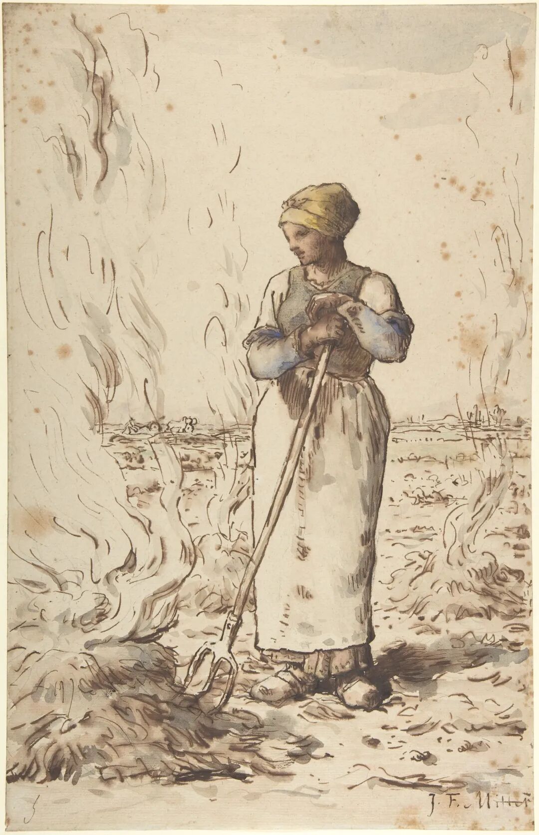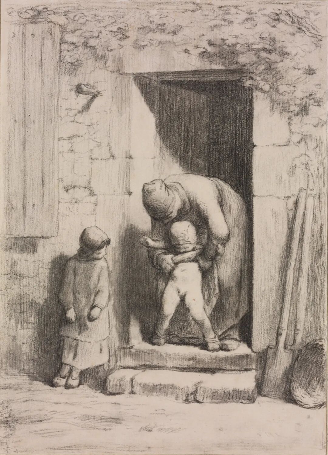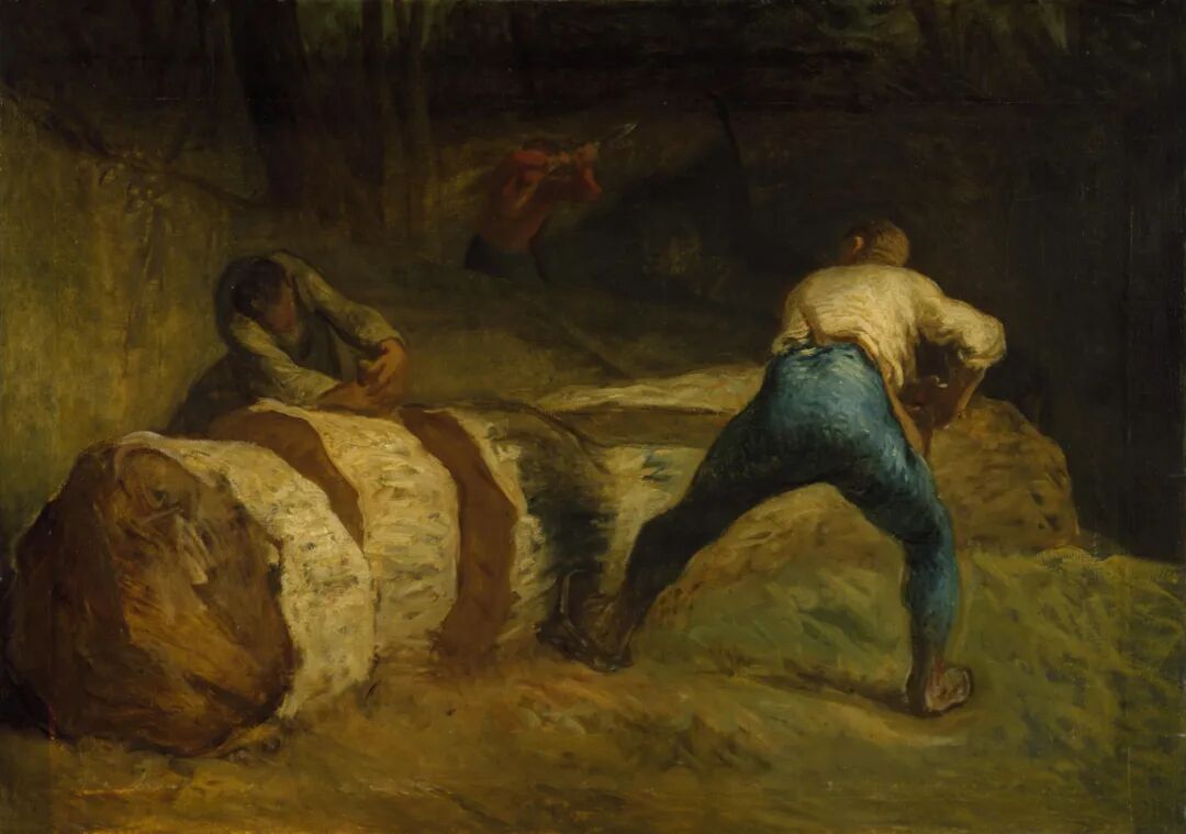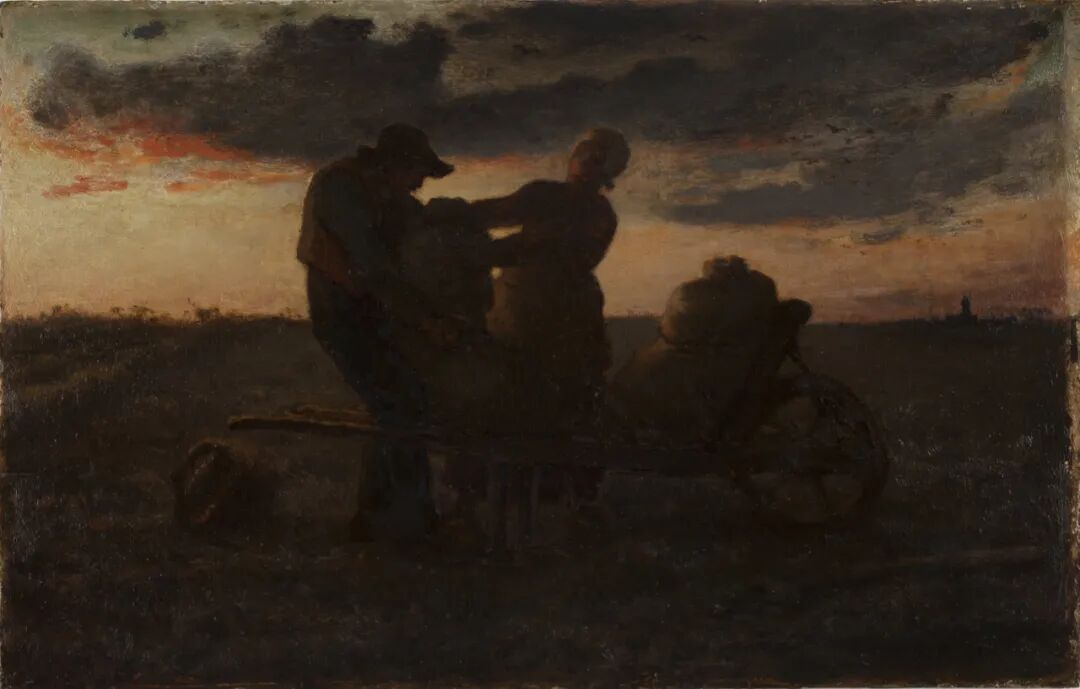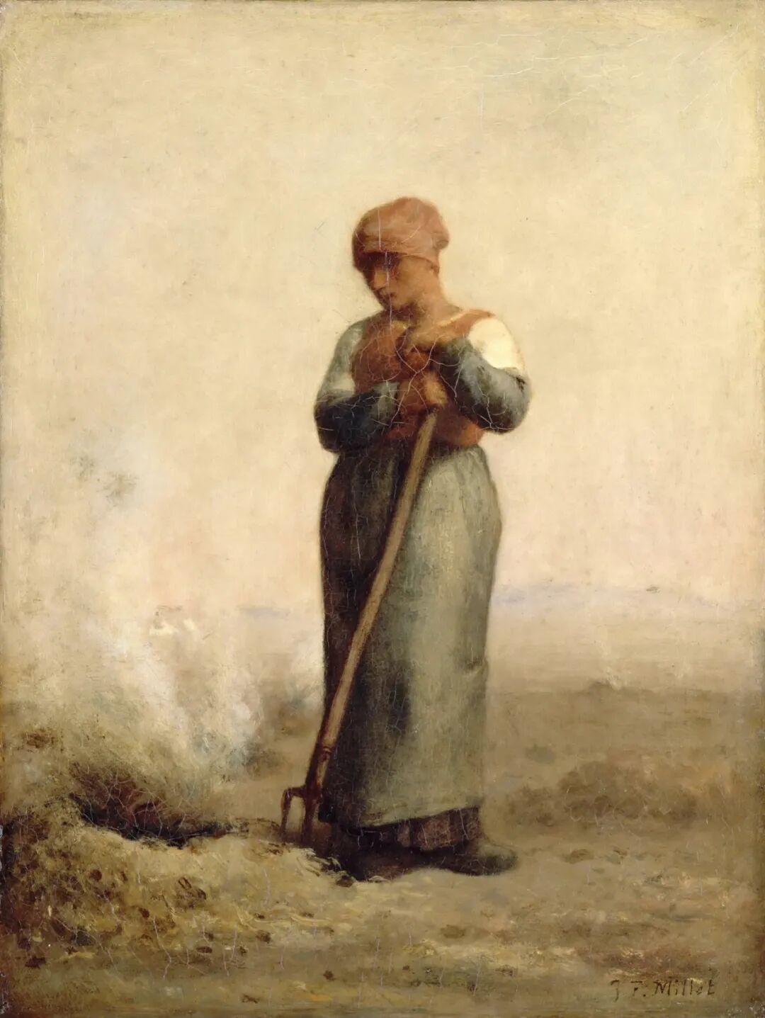 米勒注定要离开巴黎。因为,既繁华又庞大的巴黎城区,对于米勒而言是“既阴郁又枯燥”。为了生存,他又不得不去临摹或是半创作一些画风甜美、样式浮华的油画。这样虽然可以解决温饱问题,但是,每天所画得都是那些袒胸露背、沐浴更衣的女人,他发自心底的厌烦且抗拒。为了不再成为卖弄手艺的画匠,为了转变由憧憬转到失望的郁闷心境,为了独立、自我且自由的画家梦,他告别了浑浑噩噩的巴黎生涯,果决地去寻找真正属于他的艺术天地。