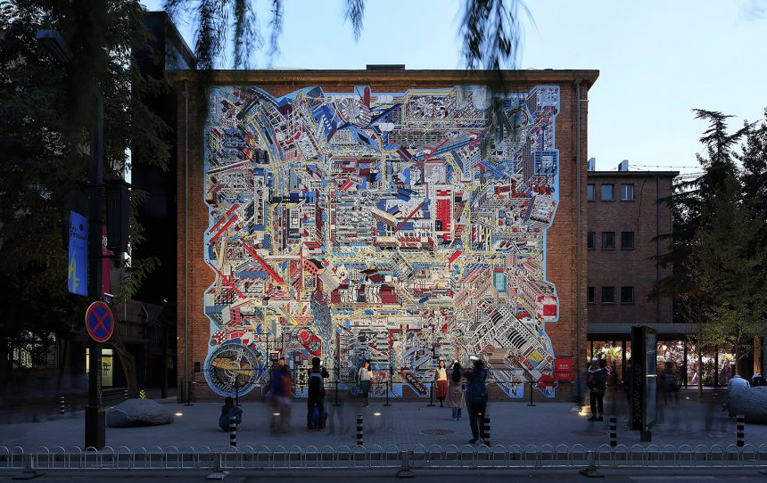 以《三里屯》为开端,他又绘制完成了《脏街 42 号楼的轮回》连续四幅作品,持续记录了 2016 年夏天发展接近鼎盛时期的、2017 年被集中整治时刻的,以及 8 个月后被改造完崭新的 42 号楼。