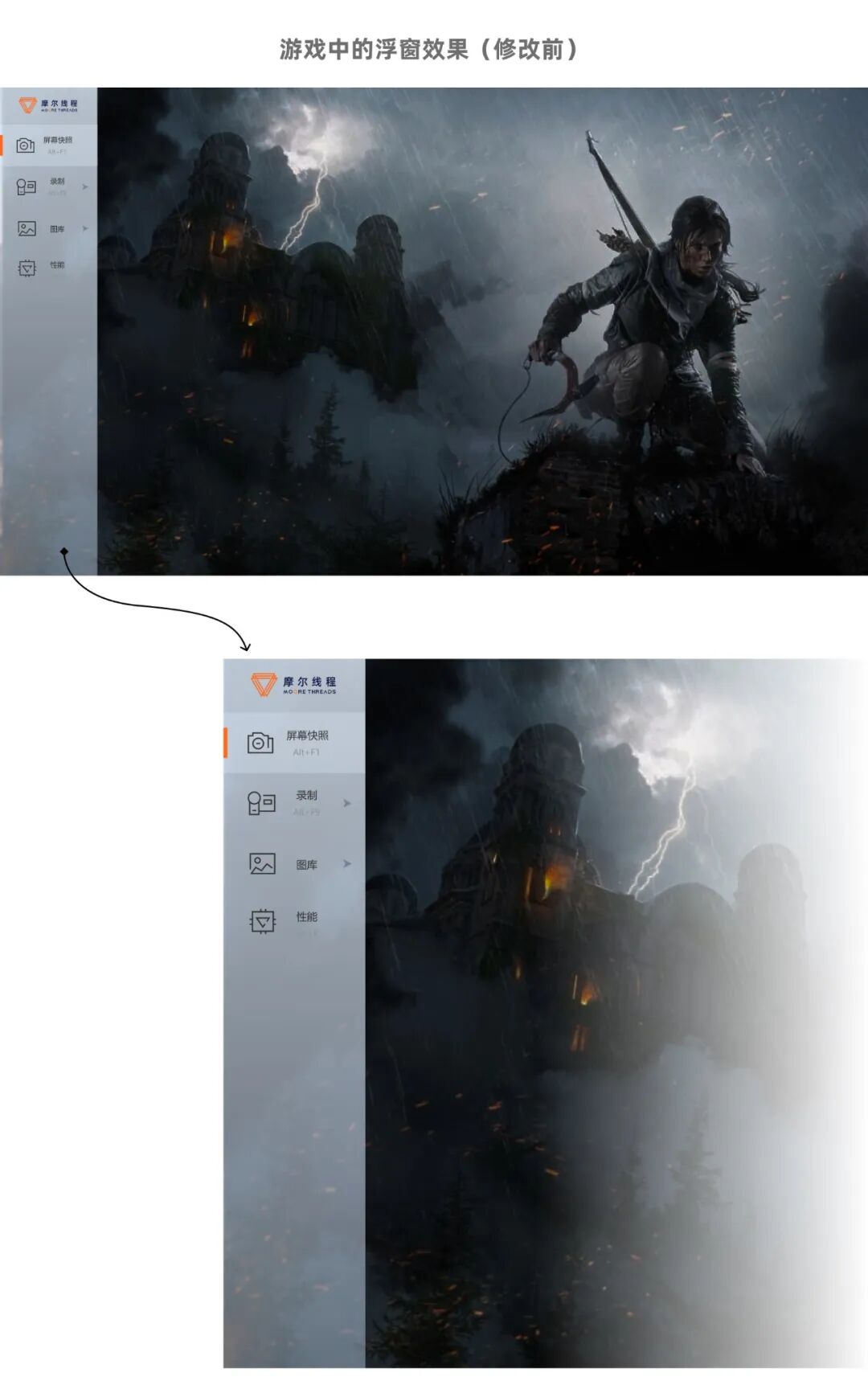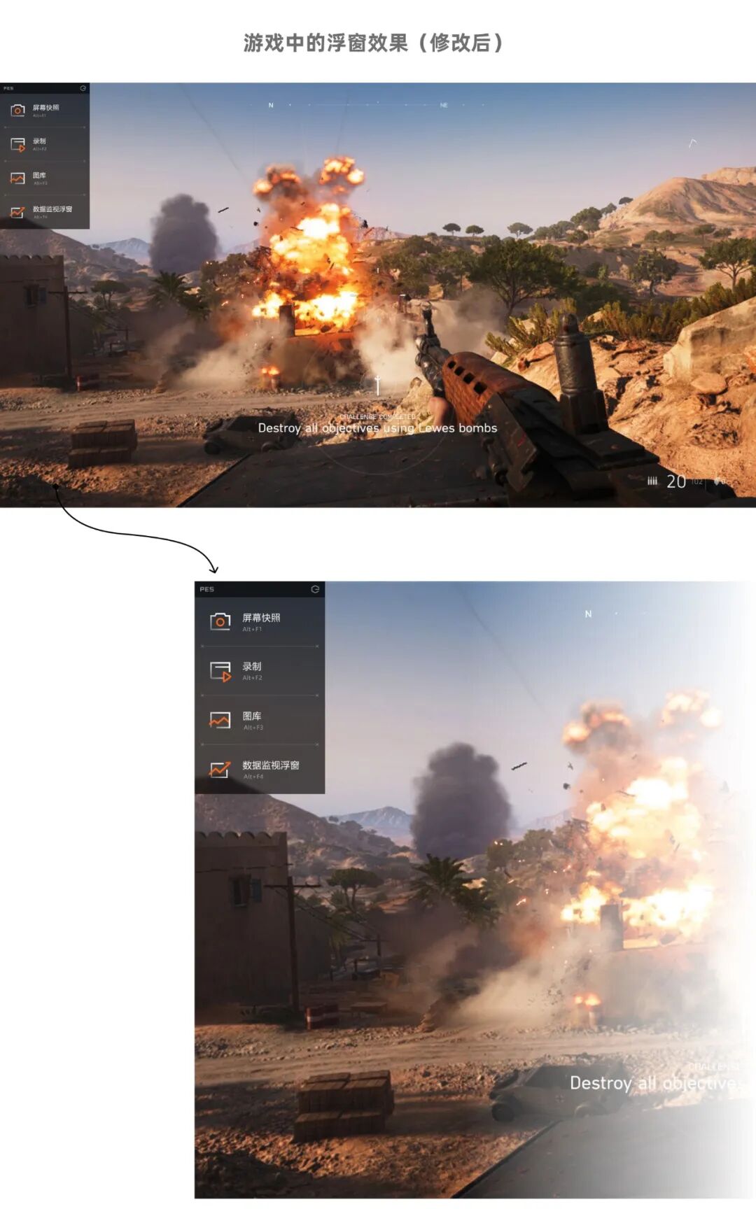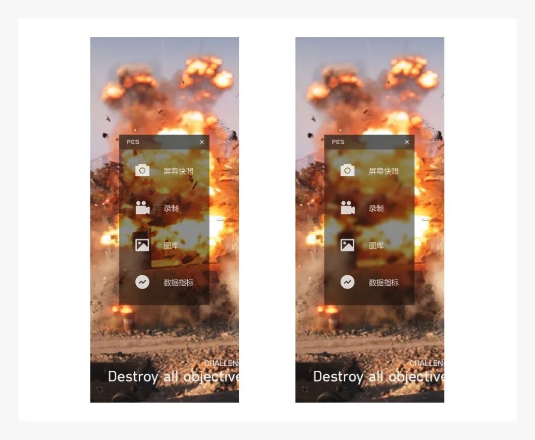 并且考虑到游戏画面也许会非常繁杂,我们不妨再加一点毛玻璃,确保上面的信息在任何场景下都更易于识别。