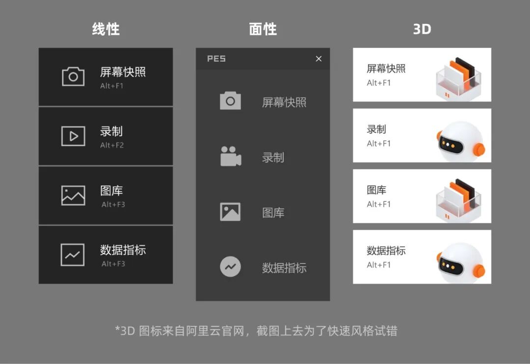 3. icon 的风格也进行了几种尝试