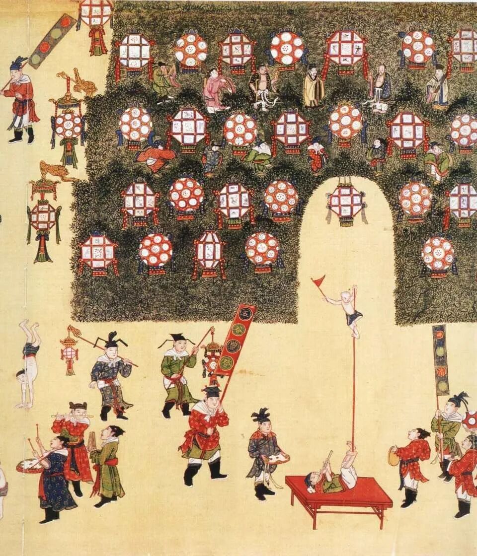 先来看看一张巨幅画卷,该画卷描绘了明宪宗朱见深正月十五在皇宫里庆赏元宵节游玩的各种情景。