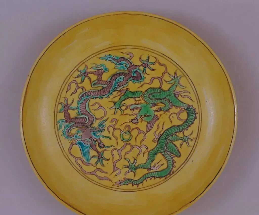 ▲黄釉,是皇家控制最严格的一种釉色,因“黄”和“皇”同音,故黄色作为皇家的象征。明代黄釉瓷器以弘治朝烧造最好,色泽均匀娇艳,有“鸡油黄”、“娇黄”或“浇黄”之称,后世多有仿品。