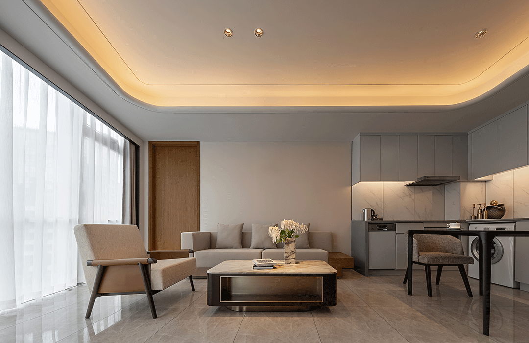 成都高新创合中心 · 盛捷服务式公寓项目,空间结合天府文化的根脉,以现代艺术性的至美,表达为万科注入活力与惬意,令成都彰显独一份的哲思。项目设计以自然延续建筑的语汇,让室内与建筑概念贯穿始终,强调空间功能性和均衡;以现代、时尚、艺术、科技手法协调建筑体块,塑造低调奢华、酷炫感。