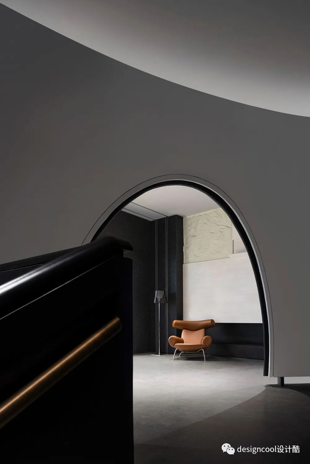 二层主要依靠圆顶形的“翼墙”作为空间划分。翼墙内部主要包括一个会议室和一个相对隐蔽的办公室。