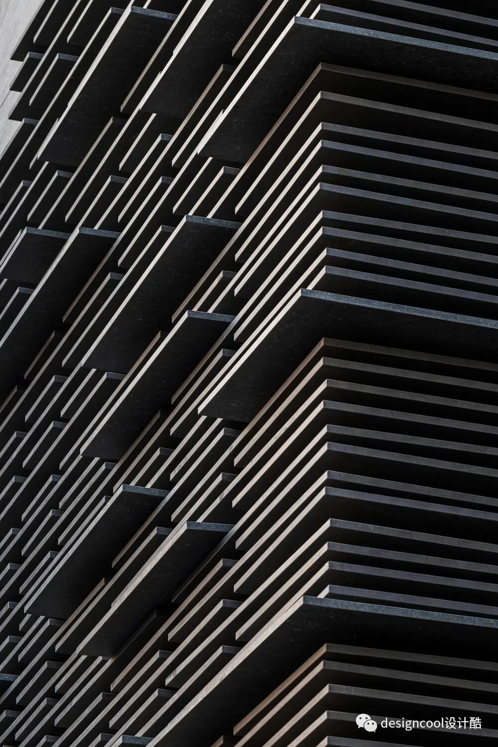 分层的石板从建筑立面延伸到内部,成为整个商店展厅的主要元素之一。它可以是大型电子屏幕的背景墙、屏幕、隔板、装饰和产品本身。在光线的投射下,它们形成了长而短的影子,就像一首悠扬的歌。