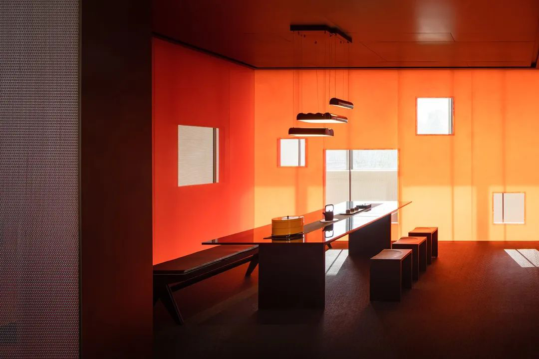 设计师还在方盒的北面和西面各设置了一个开敞的工作区域,当然,也可用于接待。
