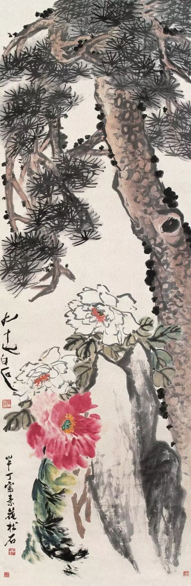 素花松石图陈半丁(1876-1970)