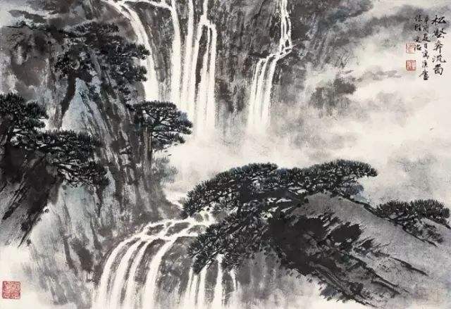 松壑观瀑 梁树年(1911-2005)