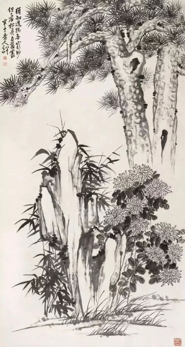 松竹菊石图陈半丁(1876-1970)