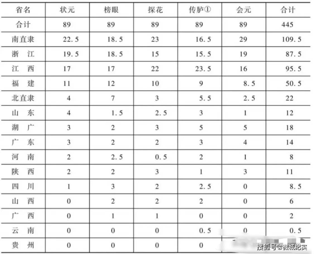 我们仅看明朝的科举一甲人数就能看出,江南地区的南直隶(现江苏+上海+安徽)64人,江西56人,浙江53人,这三省简直开挂了,拿下173个,占比64.8%。