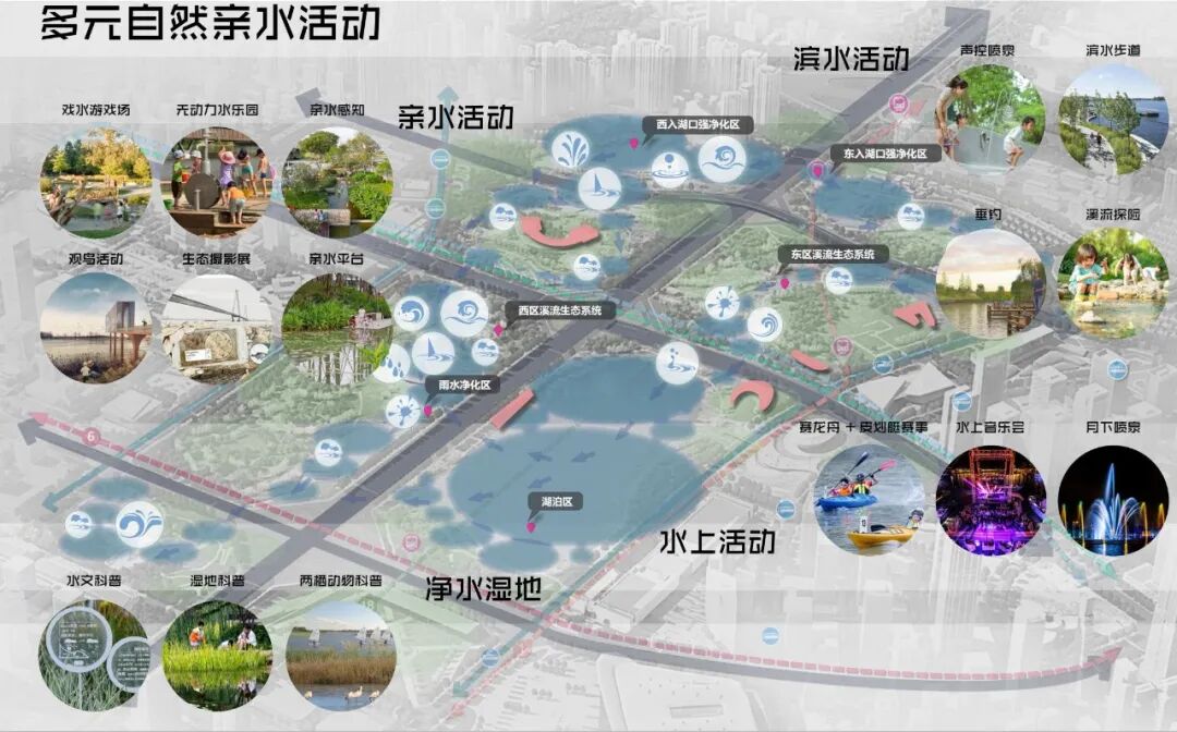 方案考虑了不同年龄阶段人群的需求,以水和岸为媒介,策划出15种玩水方式。