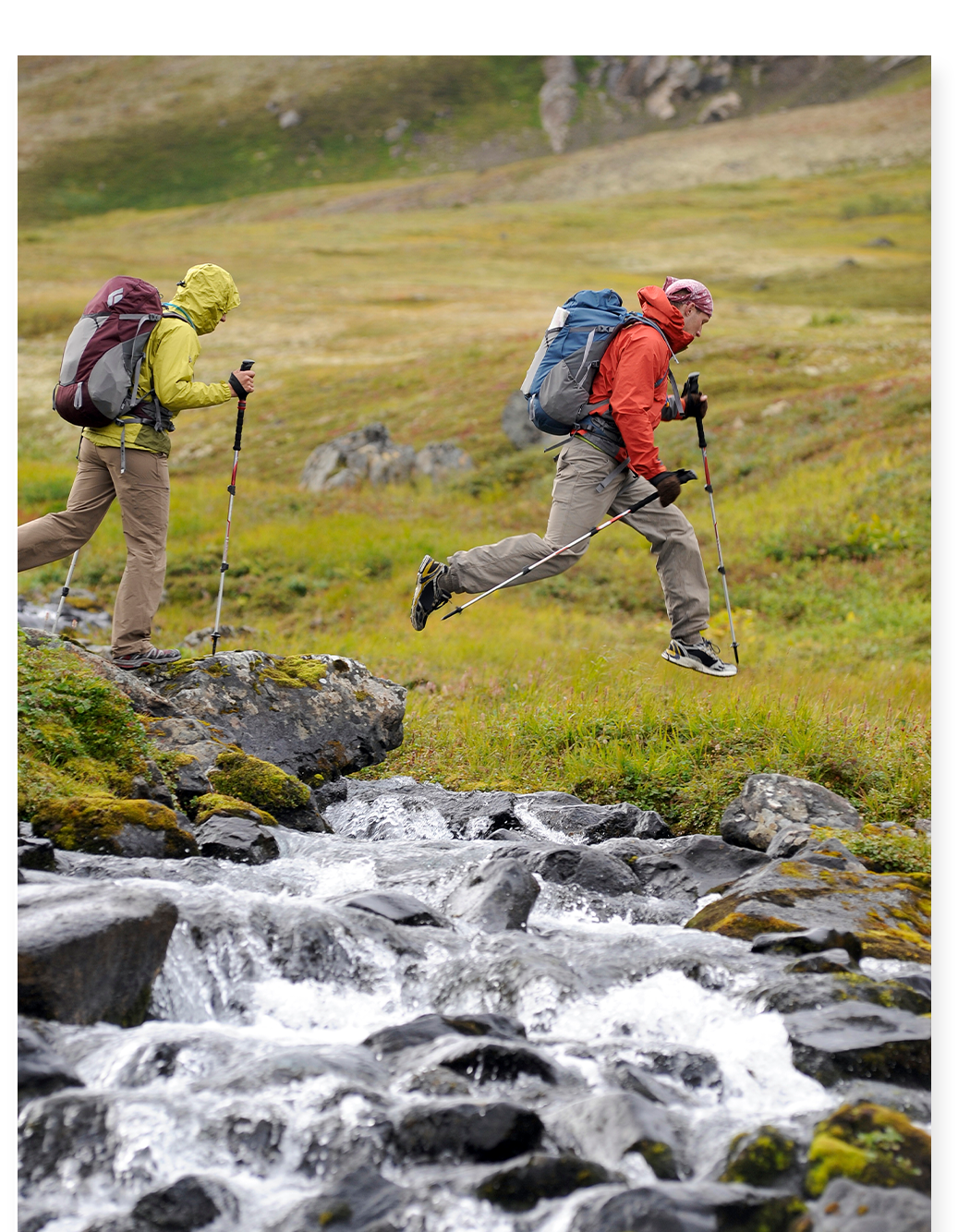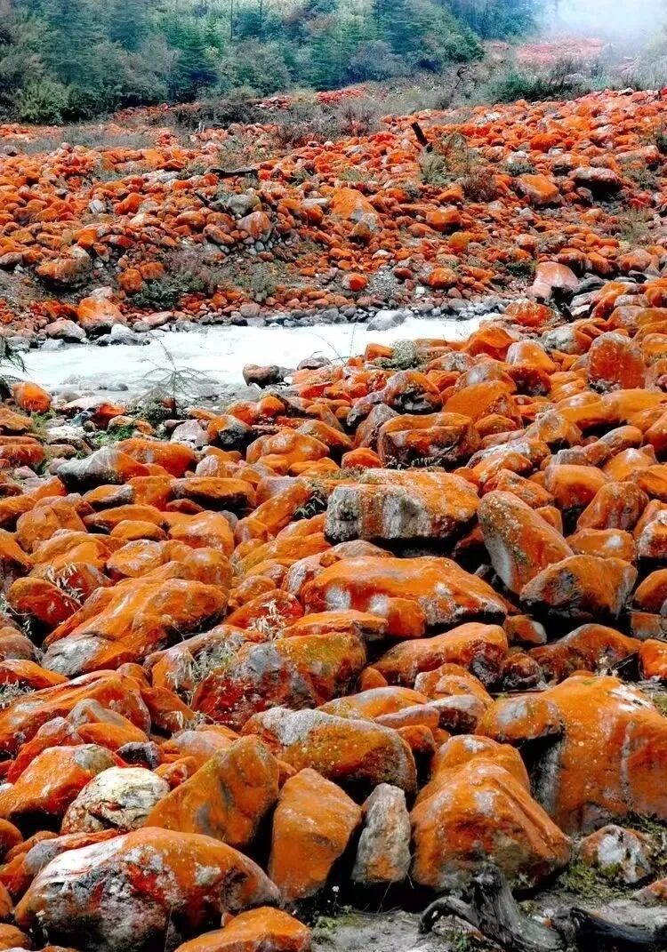 高低错落堆叠的红石虽然让道路略显崎岖,却有趣很多,湛蓝的天空,翠绿的杉林,清澈的溪水,组成了色彩艳丽的“景观油画”。