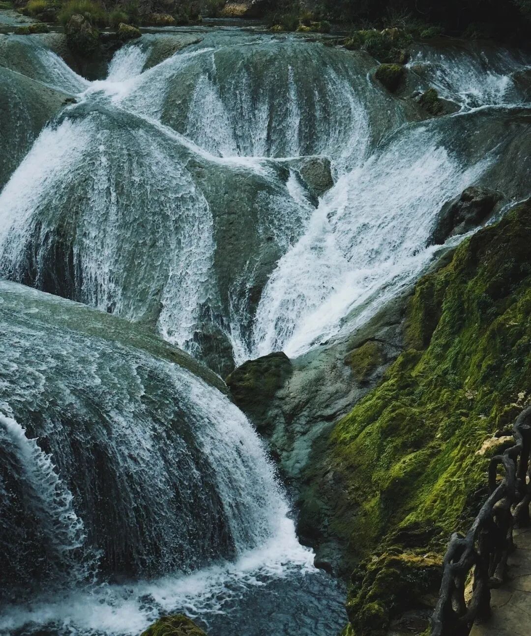 设计师还设计了一处瀑布,可以站在亲水石台上近距离观赏,不必亲往庐山,也能感受“飞流直下三千尺,疑是银河落九天”的壮丽景色。