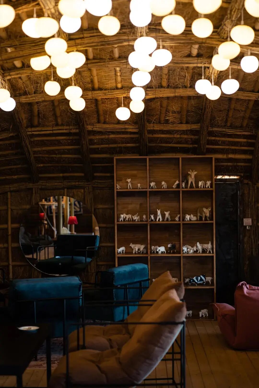 内部肆意生长的绿植更添生机,搭配着柔和灯光与极具品质感的家具配饰,共同营造了人与自然、与空间互动环境。