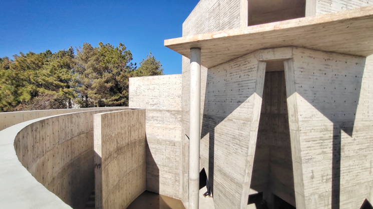 伙山美术馆是八旬最新的项目。水泥混凝土结构藏身于山顶的一片树林中,更像是一个脱离现实凭空出现的“新宇宙”。