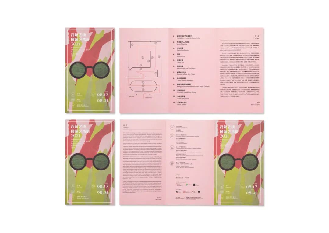这个展览的主视觉我选择的是“眼镜”这个元素,因为设计师雷纳托先生就带着一副圆形的黑色木框眼镜,他从镜框中观察着大自然的四季变迁,然后在布面上谱写他的春夏秋冬和喜怒哀乐。对于我而言,镜片也是设计师与观众的沟通桥梁,将设计师的艺术语言传播到了世界,传递到了观众的眼睛里。雷纳托用千丝万缕将四季之色编绘成了一幅幅色彩斑斓的画卷,让人能感概世间色彩之夺目灿烂。