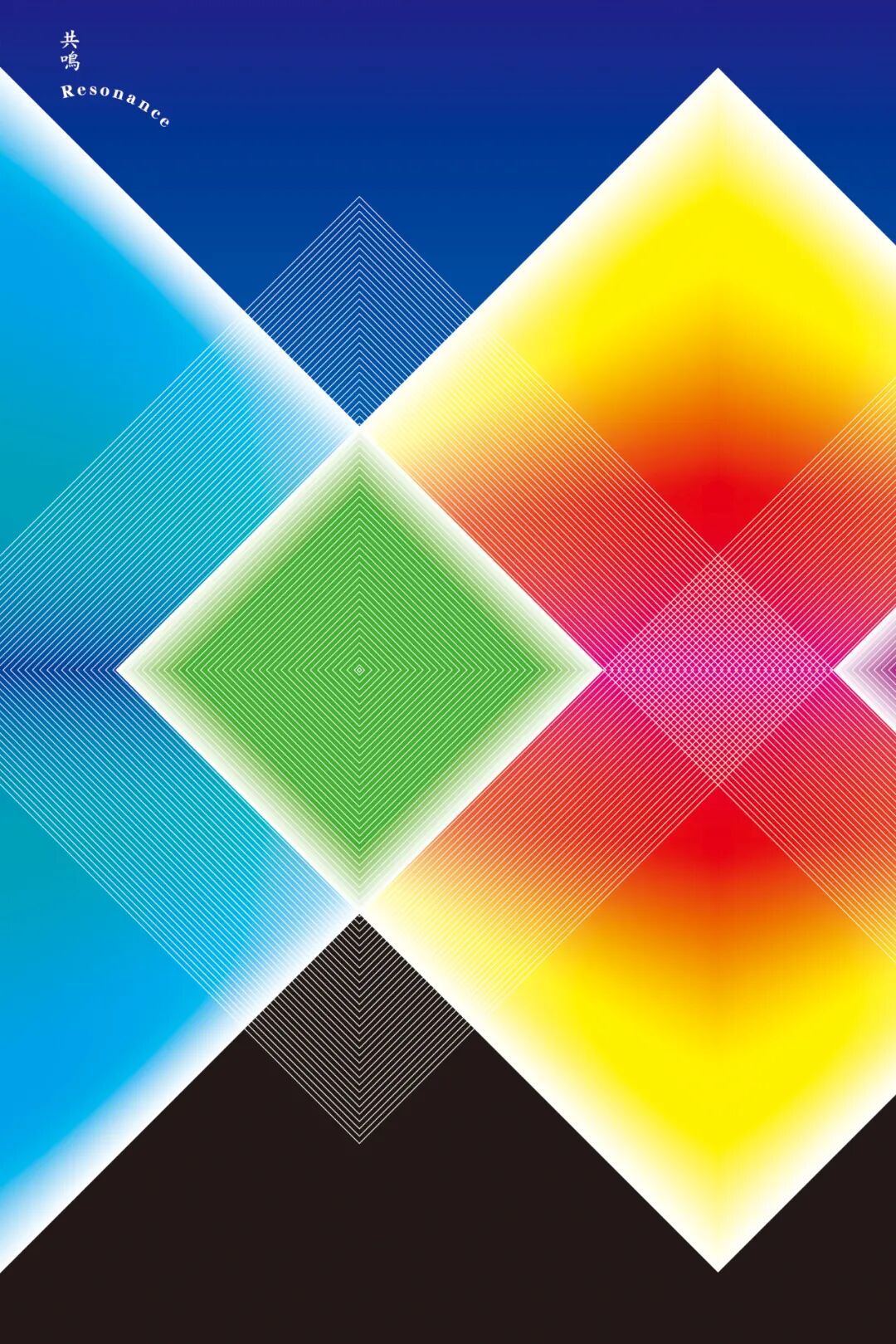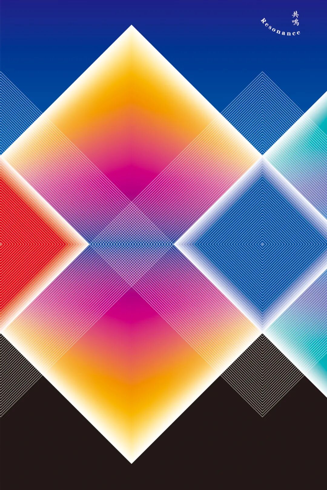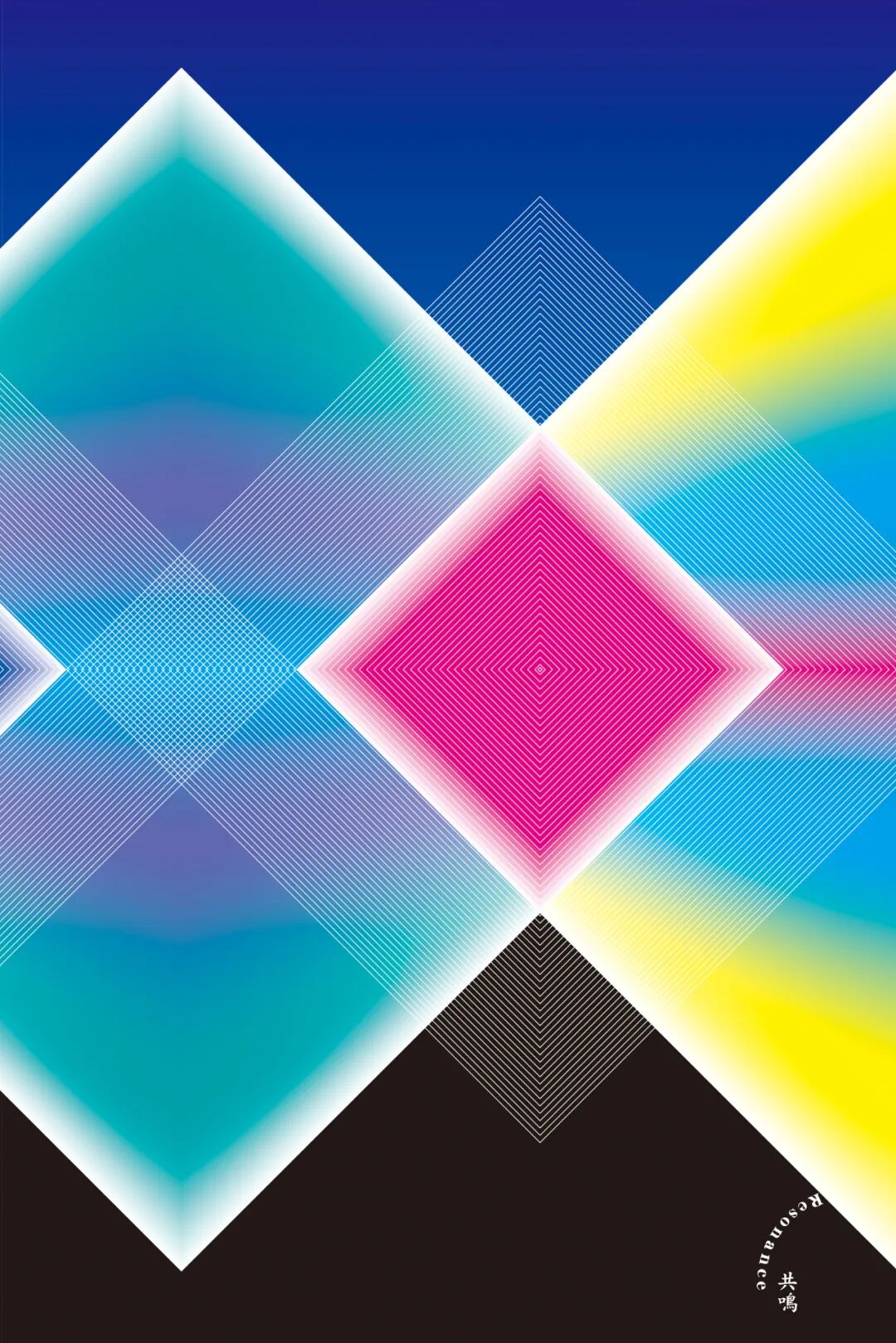 诗敏:您的《共鸣》系列作品中,运用线面的设计思路和相近但又不同的形状进行交叉,独特的创作手法将每一个的色彩中互相交织,巧妙的将每一个形状联系在一起,产生共鸣,关于这系列的作品您的设计是如何进行构思的呢?
