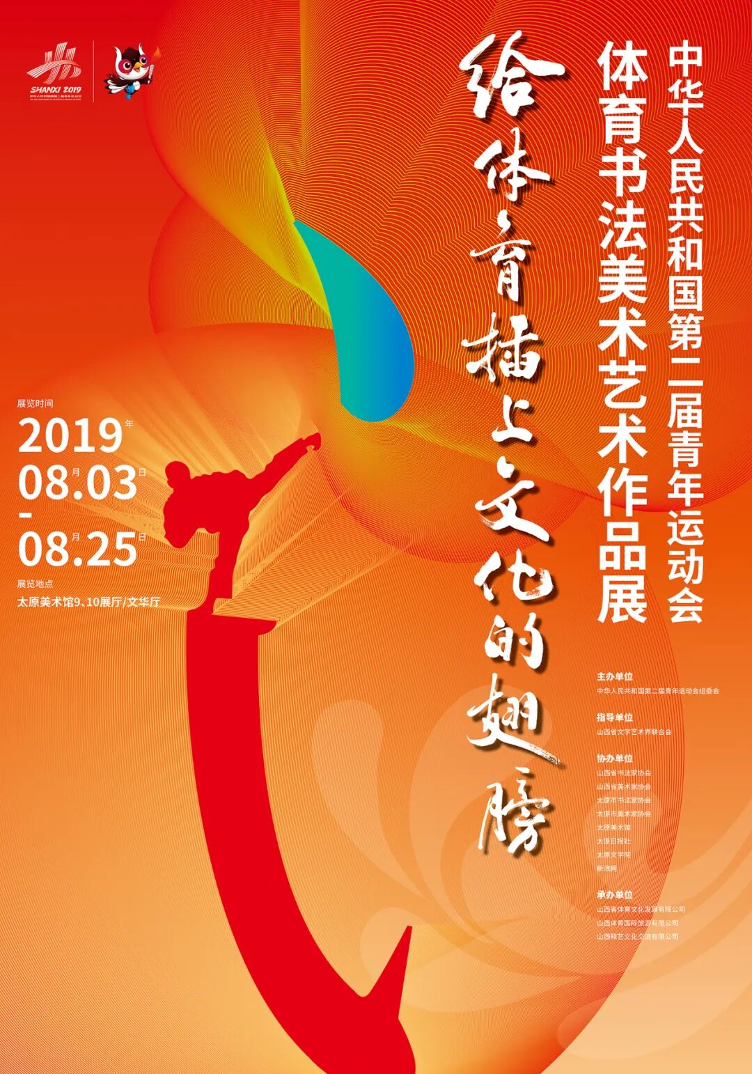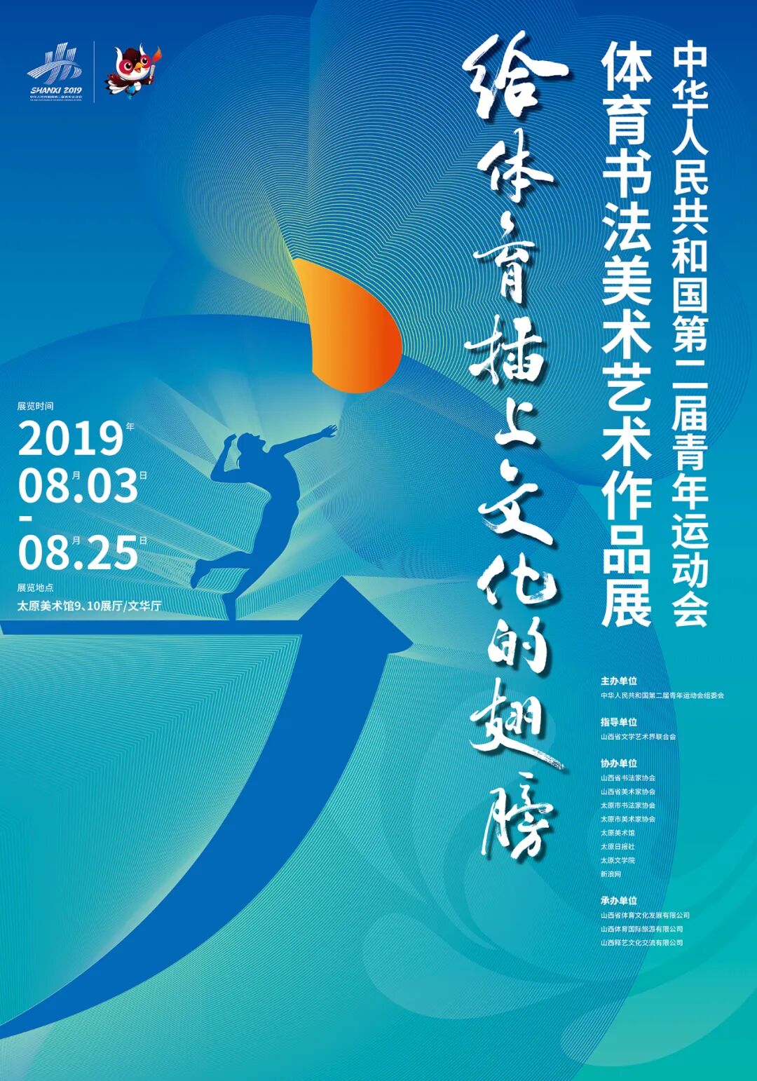 诗敏:在您的二青会体育书法美术艺术作品展海报中,巧妙的将字形笔画与体育相结合,达到汉字文化和体育的碰撞融合,充分展现中国汉字与中国体育的魅力,形成独具风格的海报设计作品,您能和我们聊聊在创作过程中是如何将汉字元素加入到海报作品之中的吗?