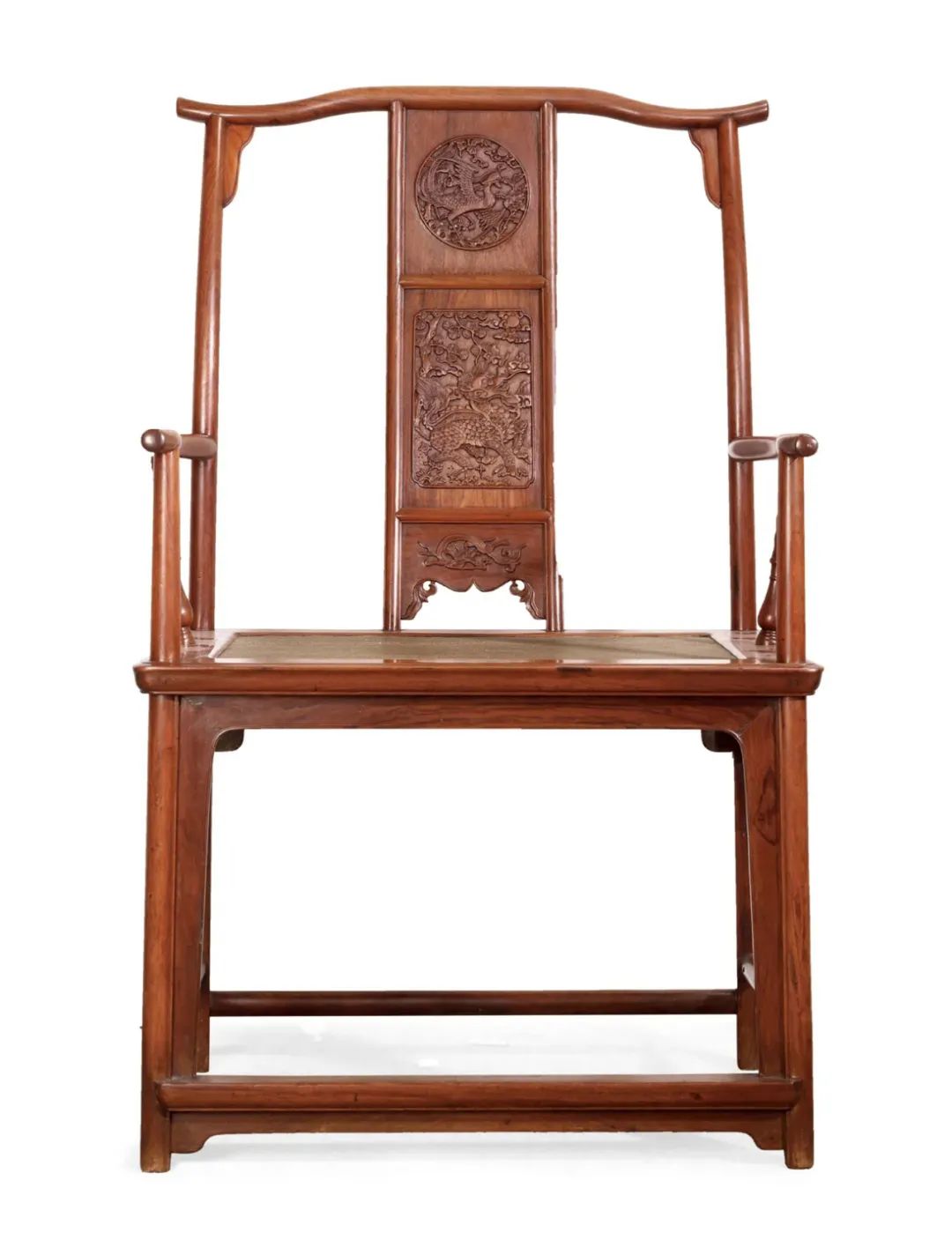 明末清初 黄花梨麒麟引凤纹 四出头官帽椅