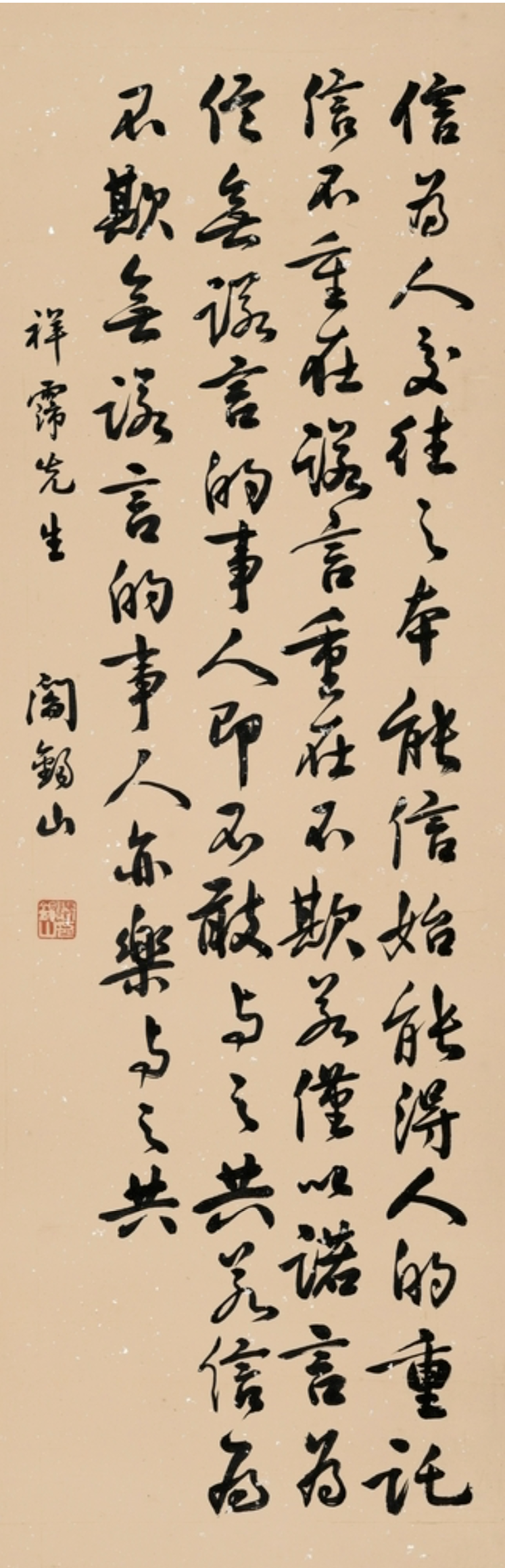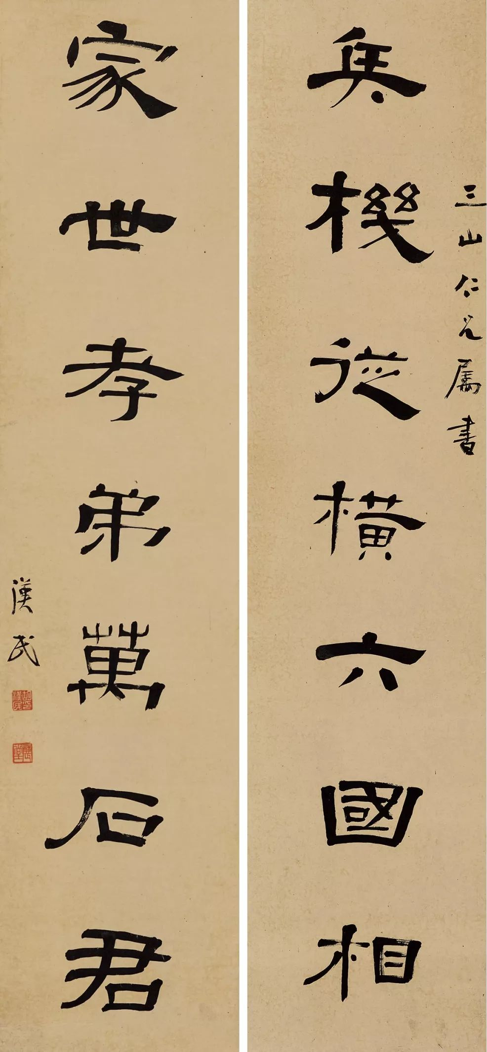 最新文章2023-08-09 民国时期的名人笔墨 民国政要 △ 曹锟(1862-1938):墨梅 立轴 纸本水墨 款识:丁卯冬月上澣,曹锟。 钤印:曹锟之印(白文)、乐寿老人(朱文) △ 曹锟(1862-1938):行书七言联 立轴 纸本水墨 释文:冰锁乾坤傲苍穹,泪洒天地笑古人 款识:曹锟 钤印:曹锟之印(白文)、乐寿老人(朱文) △ 曹锟(1862-1938):行书七言联 镜心 纸本水墨 释文:流水无形空对月,闲禽有意去寻花 款识:曹锟 钤印:曹锟之印(白文)、仲珊(朱文) △ 黎元洪(1864-1928):行楷七言巨联 立轴 纸本水墨 释文:卧看春云和江树,倾听风雨动山林 款识:黎元洪。 钤印:大总统章(白文) △ 黎元洪(1864-1928):行书五言联 立轴 纸本水墨 释文:寒塘渡鹤影,冷月葬诗魂 款识:黎元洪 钤印:元洪之印(白文)、黄陂黎氏(朱文) 黎元洪从政之暇,以骑马、书法、养花为爱好,对书法尤为钟情。当时,军阀当政,民不聊生,中国的政治局势动荡不安。黎从报纸上看到一些令人懊丧的消息时便以练习毛笔字来排遣心中的烦恼。其时各方面人士向他求书者甚多,他也有求必应。据他的秘书孙启濂说:遇有人索要,他提笔就写;若有人备好空白的对联或横幅宣纸请黎元洪题词时,黎总是高兴地按客人的意思写好交给人家。当时,很多人家里都挂有黎元洪的墨迹,全国各地的名胜古迹也有许多他的题字,备受海内外的推崇。 黎氏书出馆阁体,以赵孟頫参颜真卿,行笔雍容,结体端庄,喜用软毫,蘸浓墨如漆,每书于粉笺纸上,墨华光亮如新。本联「寒塘渡鹤影,冷月葬诗魂。」,此联出自《红楼梦》,上句为史湘云所述,下句为林黛玉所对。此联黎元洪将「花魂」改为「诗魂」,字里行间流露出气定神闲、超然物外的心境,此联以苏字为根基,辅以雄厚的功力,足见书者吞吐之手段。书联贵笔到、意到、神到,对于戎马生涯的黎元洪而言,能臻是境甚为不易,此联亦不啻为一幅文质并举、气象高迈的佳作。 △ 段祺瑞(1865-1936):行书画论一则 立轴 纸本水墨 释文:予阅画多矣,古今名家不可仆数,岂湘蘅独推倒一世耶。愿青年有此足徵绘事之高才,愿努力直进,前人毋因毕业于前而自限于后也可。 款识:辛未端节前五日正道老人赠言于沪西旅次 钤印:段祺瑞印(白文)、芝泉(朱文) △ 徐世昌(1855-1939):行书七言联 立轴纸本水墨 释文:自爱水风横笛语,欲乘秋涨刺船来。 款识:徐世昌。 钤印:徐世昌印(白文)、鞠人(朱文) △ 吴佩孚(1874-1939) 立轴 纸本水墨 释文:山河锦绣 款识:徐世昌 钤印:吴佩孚印(白文)、子玉(朱文) △ 吴佩孚(1874-1939):潇湘风雨 立轴 纸本水墨 款识:挥翰云烟落、满堂风雨寒。吴佩孚 钤印:吴佩孚印(白文)、子玉(朱文) △ 吴佩孚(1874-1939):行书自作诗 立轴 纸本水墨 释文:仰观俯察费沈吟,莫道人云还亦云。往复循环终不息,梅花数点见天心。 款识:癸酉仲冬,珠寿仁兄法正。吴佩孚 钤印:吴佩孚印(白文)、子玉(朱文) △ 胡汉民(1879-1936):隶书七言联 立轴纸本水墨 释文:兵机纵横六国相,家世孝弟万石君。 款识:三山仁兄属书,汉民。 钤印:胡汉民印(白文)、展堂(朱文) △ 戴季陶(1891-1949):行书 纸本水墨 释文:秋水共长天一色 款识:民国十六年孟春。戴传贤 钤印:戴传贤印(白文)、季陶(朱文) △ 张静江(1877-1950):行书五言连 纸本水墨 释文:清犹临川竹,惠若当风兰 款识:镜泉先生属。张人杰 钤印:张人杰印(白文)、卧禅(朱文) △ 黄兴(1874-1916):行书苏轼诗 立轴绫本水墨 释文:大江东去浪淘尽,千古风流人物 款识:荒木仁兄属书,黄兴 黄兴在中国近代史上以政治家、军事家为人们所熟知,但很少有人知道,黄兴实际上有着深厚的旧学功底和文学修养。其书法、诗词具有很高艺术意境,连同他的人品,学识和功绩令人仰为观止。黄兴的书法有儒将风度,以颜真卿晚年书体入手,上追魏碑、隶书、小篆,又兼学宋代苏东坡、黄庭坚、米芾书法和清代名家何绍基、翁同和、刘墉的楷书,自成一家。字外显丰腴,骨力内蕴,端庄典雅,雍然大度。在近代书法史研究中,黄兴是可以列入书家行列的。 △ 李宗仁(1891-1969):楷书七言轴 立轴 水本水墨 释文:忠厚留有余地步,何平养无限天机 款识:黄兴 钤印:李宗仁印(白文)、德邻(朱文) △ 杨虎城(1893-1949):楷书中堂 立轴库绢水墨 释文:少饮廉泉,老耽贞隐秘窥天府,溯一麾江。汉飞声泽,惠在民赢。得碑留封,土正杖国。灵光凝采,竞唱和西。崑传雋句,无只谱更。驴背雪桥,横绝毫素。觚棱梦,懸肺腑,嘅法曲霓裳;今异古,纵好春,无恙河山永寿。非復年,时箫鼓,众醉独醒人共仰,弃轩冕,宣南闲,寄庑婆娑舞,傍瑶台,式瞻仙侣。 款识:大圣乐用玉田隐市山林体,杨虎城。 钤印:杨虎城印(白文) △ 冯玉祥(1882-1948):隶书六言联 立轴纸本水墨 释文:学不讲将焉获,礼既復即是仁 款识:奕秋先生大雅正之,冯玉祥 一九四七 · 四 · 二二,BERKELEY 钤印:冯玉祥印(朱文)、焕章(白文) 1946年初,冯玉祥提出出国考察的要求,至4月7日,国民政府才同意他“赴美考察水利”。9月,以“特派考察水利专使”名义赴美,同时被强令退役。在美国期间,冯日夜关注着国内形势。此时,全面内战已经爆发,蒋介石政府大肆镇压国统区的学生爱国民主运动。冯于1947年5月26日在旧金山《世界日报》上发表《告全国同胞书》,呼吁“即日停战议和,由张表方、李济深、宋庆龄等主持和议大计”,“成立真正的联合政府”。 △ 阎锡山(1883-1960):隶书六言联 镜心 纸本水墨 释文:信为人交往之本,