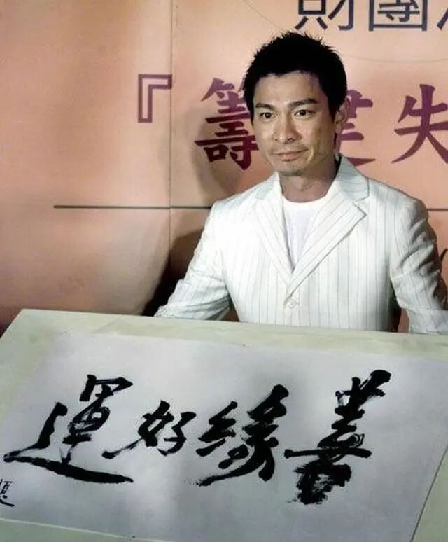 刘德华曾经为台湾一间养老院筹募善款而挥笔写下“善缘好运”作品,当场被拍出80万元,募捐作品,水平无所谓了。