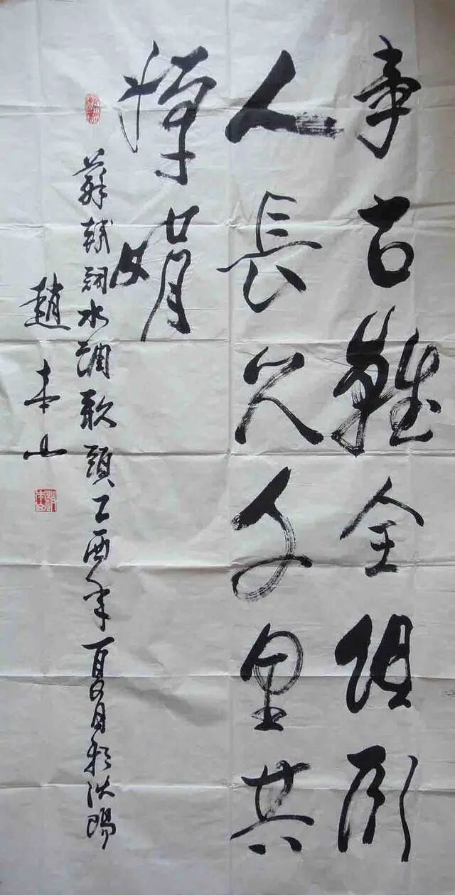 专业角度看来,赵本山的字就是普通毛笔字,还是那种文化水平不高的人的毛笔字,看似自由洒脱,实际毫无法度,无法无根无基,若不是名人效应,送人都嫌膈。难怪有人叫他不要再忽悠了,卖字不是卖拐。