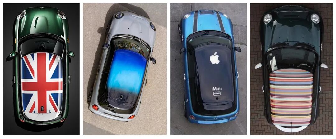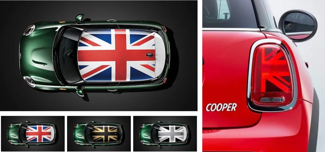 复古和英伦两个词就赋予MINI足够的个性了,同时MINI在设计相关的运营上还非常重视车主独特的个性化设计。前面讲到MINI的车顶线设计除了复古元素的营造外,还将车顶单独划出了一块方方正正的规整区域,这样的设计让车顶非常适合在个性化涂装上做文章。车主在订购MINI的时候可以分别为车顶与车身选择不同的颜色,同时官方还提供车顶贴纸的售卖,再加上MINI时不时推出的特别版,纪念版都会在车顶上玩新花样。在官方这样的带动下,还诞生了许多专门为MINI车顶做个性化贴纸的第三方商家,颇有一种“每辆MINI都有自己独特车顶”的感觉。