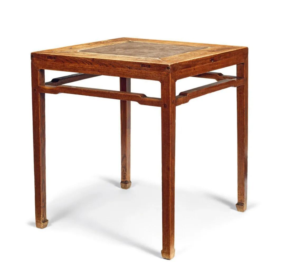清中期 榉木嵌石板面方桌