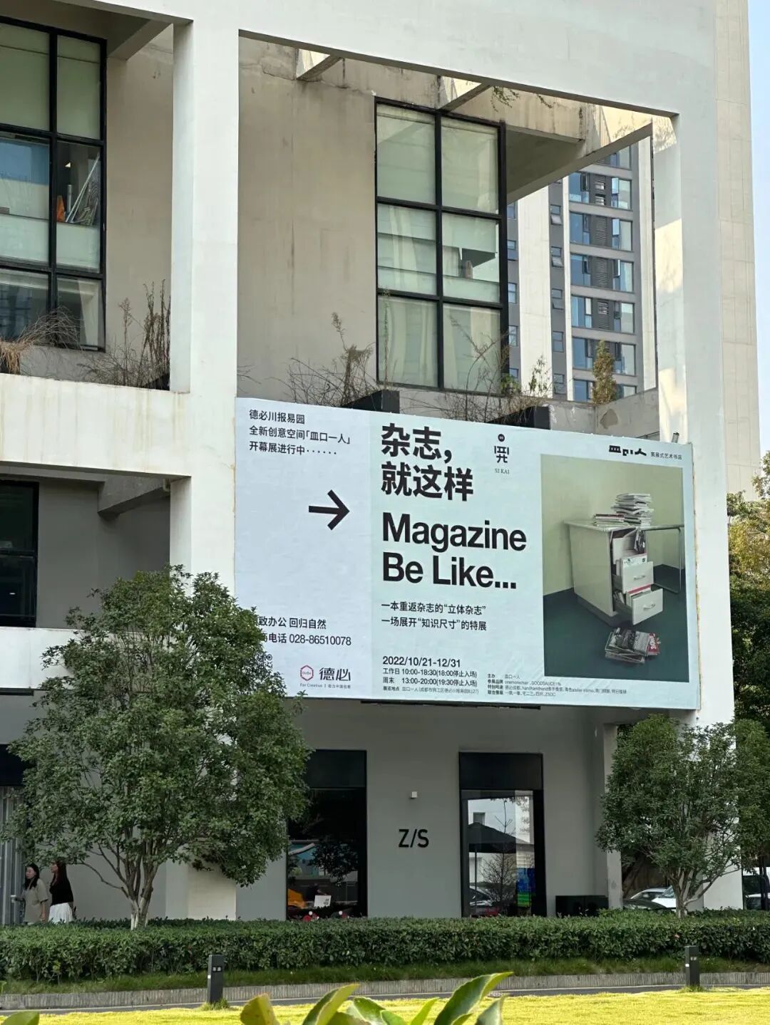 走入德必川报易园,抬头看到《四开00:杂志,就这样 Magazine, be like ... 》特展海报