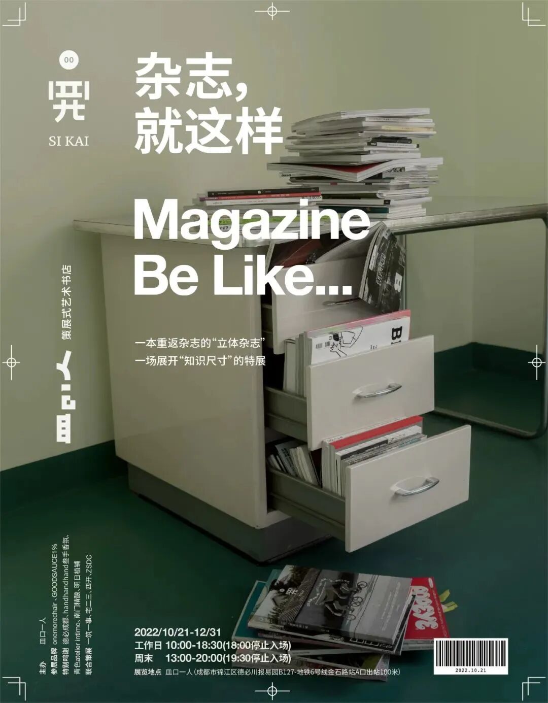 *购票赠送《四开01:工作,就要不拘一格》杂志书(68元)及《杂志,就这样》ZINE(38元)各一本;另:购买《四开01:工作,就要不拘一格》杂志书随刊附赠本场展览门票。