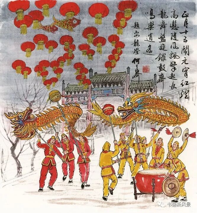 擎起长龙舞盘旋,锣鼓齐鸣乐逍遥。